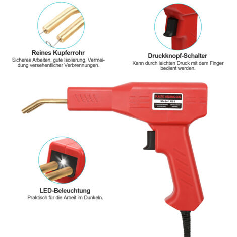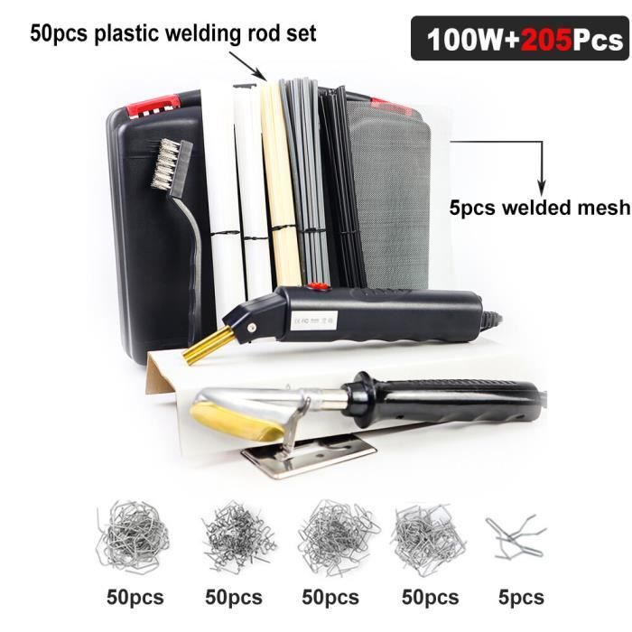 Réparation Plastique Fissuré DIY Kit De Soudeur En Plastique Pour Réparation De Pare-chocs, 700 Agrafes, Pistolet De Soudage à Réparation Plastique Bricolage Outils comté Devenir fou Adapter appareil à souder les sachets leau Là Sada Kit de soudeur en plastique pour réparation de pare-chocs, 700 agrafes, pistolet de soudage à... Le paquet comprend : 1xMachine à souder le plastique 800 agrafes (4 types, chacun 200pcs) 1xpapier de verre 1 x pince 1x valise Chauffage rapide : Seulement prendre 2-3 secondes les pistolets de soudage va chauffer à 800℃/1472℉, faire votre travail plus rapide et plus efficace. 800pcs Welding Staples : Notre kit de soudage en plastique est livré avec 4 types d'agrafes de soudage 800pcs (200pcs 0,8mm agrafes d'angle extérieur, 200pcs 0,8mm agrafes ondulées, 200pcs 0,8mm agrafes d'angle intérieur, 200pcs 0,8mm agrafes plates ), plus d'agrafes de soudage pour répondre à tous vos besoins de soudage. C'est un outil parfait pour le bricoleur. Protection contre la surchauffe : La machine à souder le plastique est dotée d'une fonction de protection contre la surchauffe. Large application : Le kit de réparation de soudure plastique est parfait pour les pare-chocs de voiture, les poubelles, les réservoirs d'eau, les tableaux de bord, les douilles de lumière, les anneaux en plastique, les radiateurs, etc. et peut être utilisé pour le bricolage de toutes sortes de produits en plastique. Ce kit d'outils de réparation de soudure est utilisé pour réparer les pièces en plastique du véhicule. Remettez vos pièces défectueuses et prolongez leur durée de vie