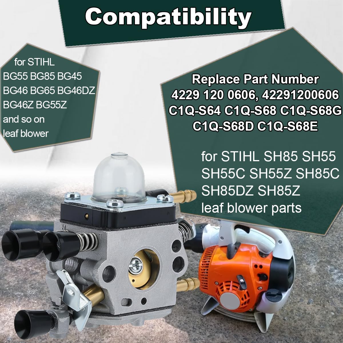 EBTOOLS carburateur pour Stihl Carburateur adapté pour Stihl BG45 BG46... Modèles compatibles : pour Stihl souffleur de feuilles BG45 BG46 BG55 BG65 BG85 SH55 SH85., REMARQUE : comparez soigneusement C1Q-S55 et C1Q-S68, les 2 carburateurs varient en fonction de la tringlerie d'accélérateur et des conduites de carburant, assurez-vous d'obtenir le bon. Contenu de l'emballage : 1 carburateur, 2 joints, 2 ampoules d'amorçage, 1 bougie d'allumage, 1 filtre à air, 1 kit de conduite de carburant, 2 filtres à carburant. Kit Carbu C1Q-S68G 4229 120 0606 Souffleur De Feuilles Stihl CARBURATEUR Carburateur Pour BG55 BG85 BG45 BG46 BG65 SH85 SH55 SH55C Souffleur Feuille Stihl Carburateur Pour Souffleuse Carburateur Remplacer le numéro de pièce du fabricant : zama C1Q-S68G C1Q-S64 C1Q-S68D C1Q-S68E , Remplacer OEM # 4229 120 0606 ikatesi Kit de afinación de carburador BG50 para soplador de hojas... Emballage inclus : 1 carburateur 2 joints 2 poire d'amorçage 1 bougie d'allumage 1 filtre à air. C1Q-S68G BG65 Carburateur pour Stihl BG55 BG85 BG45 BG46 SH55
