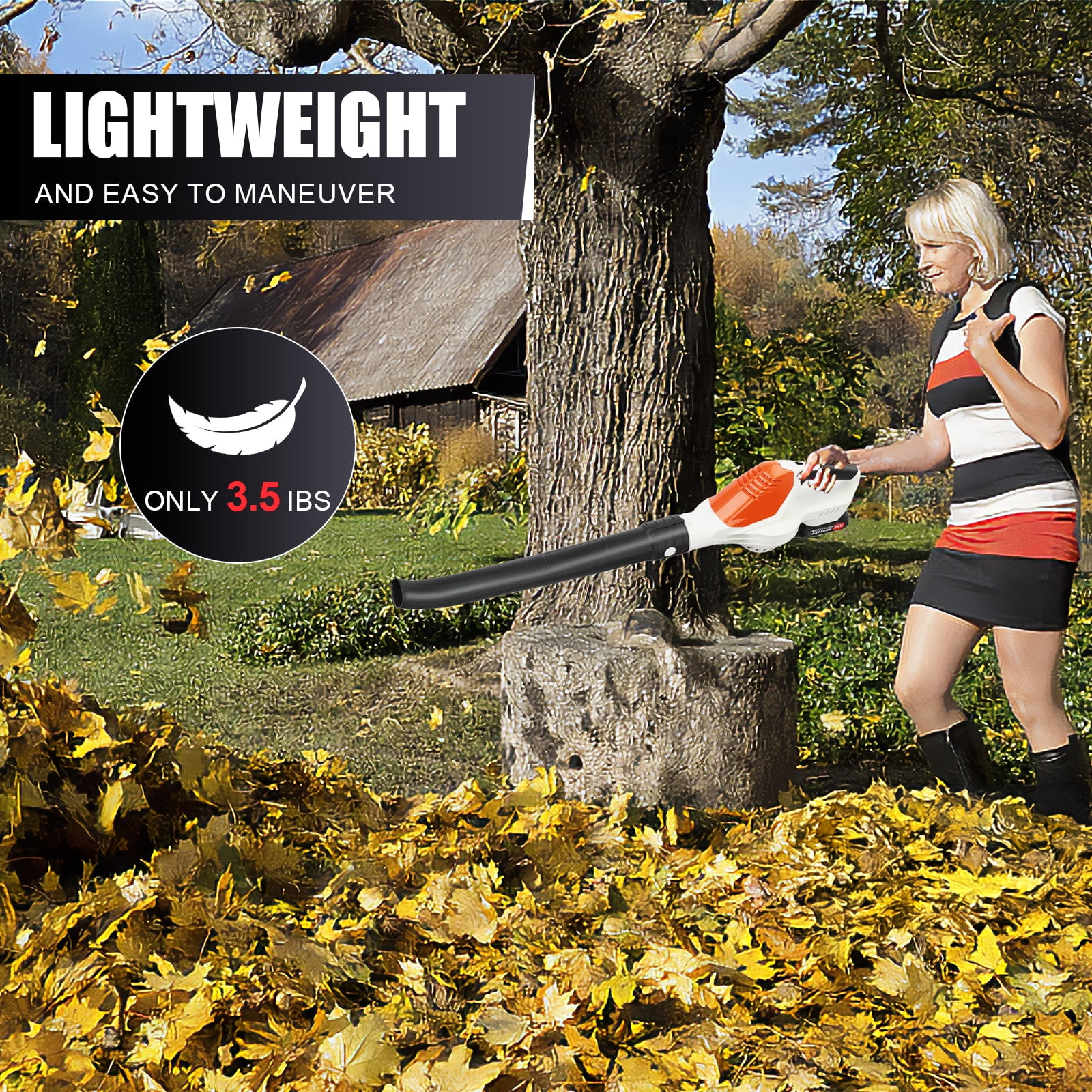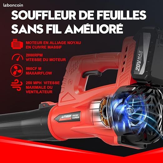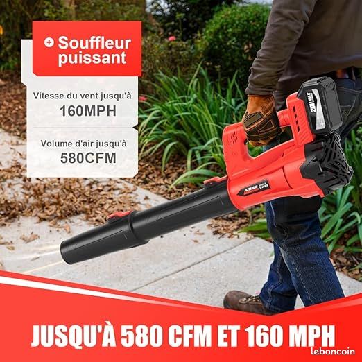 Souffleur axiale 18Vsans fil batterie 2.0Ah 209 km/h - Gamm vert Souffleur Jardin 580 CFM Sirul Souffleur Feuilles Sans Fil 2000w Alimenté Par Batterie Lithium Souffleur Feuilles Sans Fil 20V Le souffleur est indispensable pour souffler les feuilles de vos allées de jardin. Aspirateur souffleur ou aspirateur souffleur broyeur pour plus de confort, vous devrez aussi choisir l'énergie : thermique, électrique ou à batterie. A sac, avec variateur de vitesse, à dos ou sur roues : suivez les conseils du guide Liberté sans fil : deux batteries lithium 20 V 4000 mAh offrent une recharge rapide en 2 heures et jusqu'à 25 minutes d'autonomie à faible vitesse, parfait pour les jardins sans les inconvénients des cordons Cet outil d'extérieur vous permettra de rassembler et d'évacuer facilement les feuilles mortes et les débris végétaux. Léger, maniable et peu bruyant, le... Ergonomique et léger : souffleur de feuilles à batterie pesant seulement 4,3 lb, ce souffleur est doté d'une poignée ergonomique pour une utilisation confortable d'une seule main, minimisant la fatigue lors d'une utilisation prolongée Option de buse multifonctionnelle : améliorez votre efficacité de nettoyage avec ce souffleur sans fil 21 V, qui comprend 2 buses différentes d'une longueur allant de 60 cm à 78 cm.