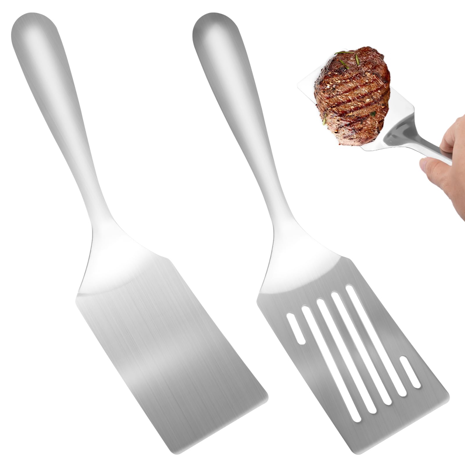 ③: Ce spatule inox plancha de 6,5cm de large, facile à nettoyer, supporte le lavage au lave-vaisselle, sa structure sans couture réduit la retention de saleté, permettant un entretien simple et pratique Le Set Comprend: Ce set comprend une spatule plate et une spatule à rainures, parfaits pour retourner des filets de poisson, des steaks, des hamburgers, des œufs ou pour faire sauter et cuire au four, la conception à rainures facilite également la filtration de l'huile et de l'eau, vous aidant à réaliser divers plats facilement Prise En Main Confortable: Notre spatule cuisine possède un manche robuste, en acier inoxydable monobloc, assemblé solidement, sans couture, résistant à la chaleur et durable, ne tombe pas facilement, offrant un bon équilibre et une prise en main confortable, même lors d'une utilisation prolongée,évite la fatigue Spatule Plate Et Rainurée 25cm 2 Pièces Spatule BBQ, Spatule Teppanyaki, Spatule Barbecue Avec Manche Set Spatules Pour Plancha Matériau De Haute Qualité: Notre spatule inox est fabriqué en acier inoxydable de qualité supérieure, il possède d'excellentes propriétés anticorrosives, est peu affecté par la fumée ou l’environnement, durable et soigneusement poli, avec une surface lisse et délicate, ce qui facilite la cuisson et la pâtisserie Que vous utilisiez une plancha, un barbecue, ou même une poêle à griller, ces spatules sont les outils parfaits pour maîtriser vos cuissons à haute température. -facilité d'entretien et longévité: l'inox est un matériau facile à nettoyer, soit à la main, soit au lave-vaisselle Caractéristiques ①: Notre spatule pizza est fabriqué en acier inoxydable alimentaire, antidérapant et résistants à la chaleur, avec un manche monobloc équilibré qui réduit la fatigue, rendant la cuisine et la pâtisserie plus facile ②: Le spatule pour plancha comprend une spatule plate et une spatule à rainures, longue de 25cm, adaptée pour retourner des filets de poisson ou des hamburgers, la conception avec rainures filtre la graisse et l’eau pour une cuisine plus saine ③: Ce spatule inox plancha de 6,5cm de large, facile à nettoyer, supporte le lavage au lave-vaisselle, sa structure sans couture réduit la retention de saleté, permettant un entretien simple et pratique ④: Ce spatule en acier inoxydable convient à une grande variété de scènes, comme poêles plates, poêles en fonte ou grilles, parfait pour la cuisine familiale ou les activités de plein air, avec une structure métallique robuste et durable Specifications Couleur: Comme indiqué dans l’image Matériau: Acier inoxydable Poids: 192 g Packaging Inclut: 1 x Spatule Plate 1 x Spatule à RAINURES Conseils En raison de méthodes de mesure différentes, le poids et les dimensions peuvent varier légèrement En raison des variations d’affichage et d’éclairage, la couleur réelle peut différer légèrement de l’image Maxi spatule large Inox pour plancha - Le Marquier