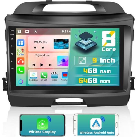 Sécurité et Commodité : Radio Android pour Kia sportage est équipée d'une caméra arrière. Kia Sportage Accessories Autoradio GPS Kia Sportage De 2010 à 2016 - Carplay & Android ⇒ Acheter En Ligne Carpodgo T3 Pro 1 GPS 2 FM/RDS/EQ 3 Bluetooth Nos autoradio GPS CARPLAY Kia Sportage s'intègrent parfaitement à votre tableau de bord avec un résultat comme d'origine. Branchement simple et facile grâce au connecteur d'origine fourni. Nos appareils sont rigoureusement sélectionnés afin de vous offrir la meilleure qualité au meilleur prix Performances et Stockage Puissants : Carplay voiture pour Kia sportage équipé d'Android 15, d'un processeur 4 cœurs, de 4 Go de RAM et de 128 Go de stockage, cet autoradio offre des performances rapides et stables. Exécutez plusieurs applications, stockez des cartes et téléchargez des médias sans ralentissement. 8-Core/6 128GB] Hikity 9 Pouces Android Autoradio pour Kia Sportage... La prise en charge de Mirror Link filaire + sans fil garantit la compatibilité avec une large gamme de smartphones Écran Tactile In-Cell haut de gamme : Profitez d'un contrôle ultra-réactif et d'un affichage cristallin grâce à notre écran In-Cell 1280×720 pour Kia sportage 2010 2011 2012 2013 2014 2015 2016, qui réduit les reflets et améliore la sensibilité tactile pour une navigation plus fluide, des réglages plus précis et un plaisir multimédia accru Audio Améliorés et Personnalisation : Affinez votre expérience d'écoute grâce aux réglages d'égalisation et à la radio FM/RDS, qui garantissent un son cristallin et un accès facile à vos stations préférées. Kia Sportage | 2010-2016 | Android 14 Autoradio | Apple CarPlay | Android Auto Une fois connecté, accédez à la navigation, aux appels, aux messages et à la musique directement sur l'autoradio, tout en gardant les mains sur le volant. La compatibilité avec les commandes au volant (SWC) ajoute une touche de commodité pour une conduite en toute sécurité