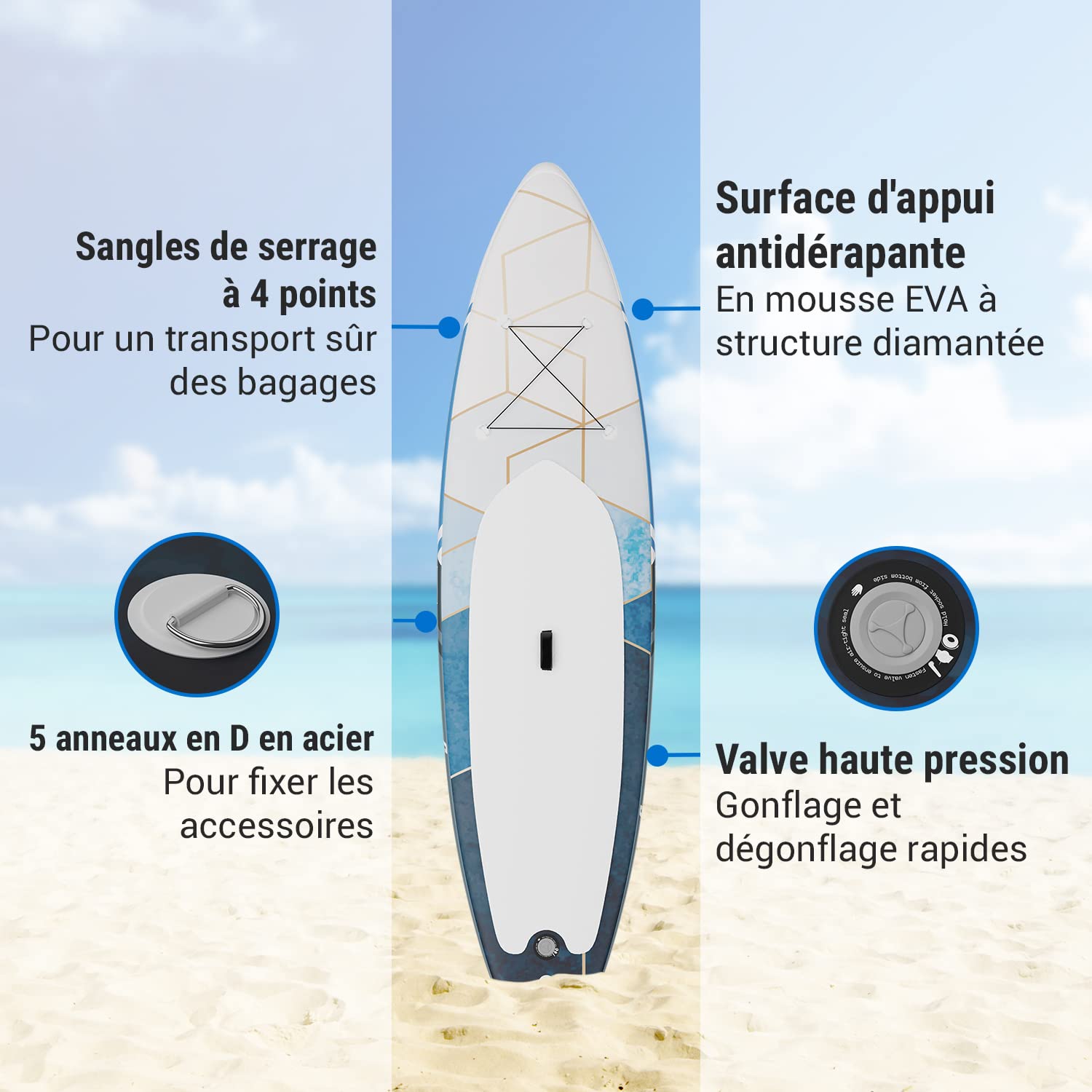 Paddleboard Gonflable Adulte Capital Sports Kipu Paddle Gonflable, Planche à Pagaies Paddle Board Avec Accessoires Découvrez comment le paddle gonflable Capital Sports transforme vos sorties en famille en aventures inoubliables : guide complet pour profiter au maximum des plaisirs nautiques en toute sécurité Paddle Gonflable 2 Personnes INO 12' avec Pope, 2 Pagaies, 2 sièges de FIXATION SÛRE DES ACCESSOIRES: Ces paddles gonflable pour adultes et enfants sont équipées de sangles et d'anneaux en D pour maintenir vos accessoires en sécurité. Le soleil brille, l'eau appelle et le Capital Sports Downwind Cruiser 10.8 planche de SUP Avec ses 330 x 77 x 15 cm, attendez à la conquête des rivières et des lacs. Parce qu'avec ça planche à pagaie gonflable en avez-vous un rapide planche à pagaie qui vous permet de découvrir lacs et rivières - de la manière la plus décontractée certainement La poignée centrale vous permet de transporter la planche paddle d'une seule main. PLUS DE SÉCURITÉ : Nos paddles sont conçues pour vous donner confiance sur l'eau. Equipés d'un coussin pour les pieds pour une meilleure adhérence et d'une sangle de cheville pour maintenir la planche si vous vous renversez pendant votre parcours. CONCEPTION DURABLE POUR D'INNOMBRABLES EXCURSIONS : Fabriqué à partir de PVC double couche pour une stabilité accrue et une utilisation à long terme, ce paddleboard est toujours stable et facile à utiliser, même pour les débutants.