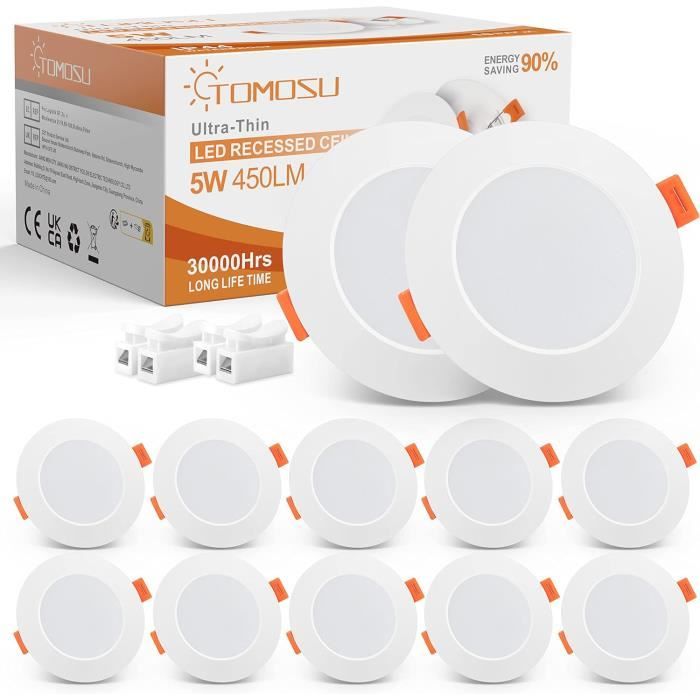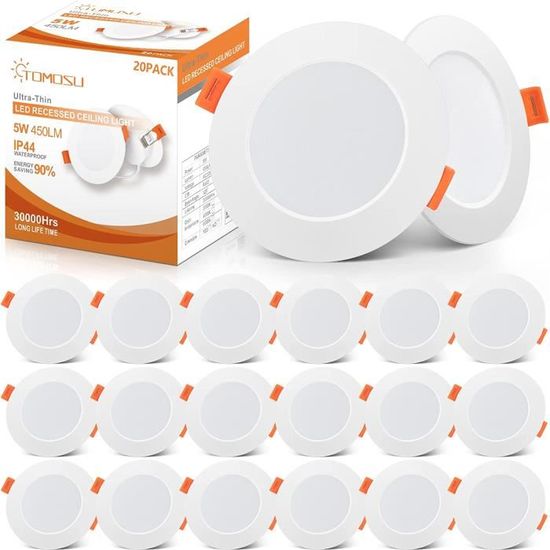 éclairage De Plafond Extra Plat - 5W 4000K - IP44 Pour Salle De J 634157 Un spot LED extra-plat n'est autre qu'un spot LED classique, mais dont la profondeur d'encastrement est beaucoup plus réduite. En effet, avec leur faible diamètre d'encastrement, nos spots encastrables plats sauront s'encastrer dans tous vos espaces, même les plus réduits Spots LED Encastrables Extra Plats 24W IP44 Eande Lot De 10 Spot LED Encastrable Noir Extra Plat 5W IP44 98mm, Blanc Froid 6500k Éclairage Plafonnier Salle De Bain 💡【3 Températures de Couleur Réglables】Ce Spot LED Encastrable carré 24W offre trois températures de couleur (3000K chaud, 4000K neutre, 6000K froid) pour créer une ambiance lumineuse adaptée à chaque pièce. 💡【Installation Facile et Design Moderne】Avec un format carré de 220 mm et une profondeur de 25 mm, ce spot encastrable exterieur s’adapte aux ouvertures de 185 à 210 mm. Trois Températures de Couleur Réglables] : Ce spot LED encastrable de 24W offre trois températures de couleur (3000K blanc chaud, 4000K blanc naturel, 6000K... Parfait comme Spots LED Plafond dans la salle de bain, le salon ou la cuisine. Connexion directe au courant 220-240V sans transformateur, idéal pour rénovation ou projets neufs. Garantie 3 ans incluse et assistance client sous 24h pour toute demande après-vente. 💡【Durée de Vie Longue et Garantie 3 Ans】Conçu pour durer jusqu’à 30 000 heures, ce spot encastrable exterieur réduit les remplacements fréquents.