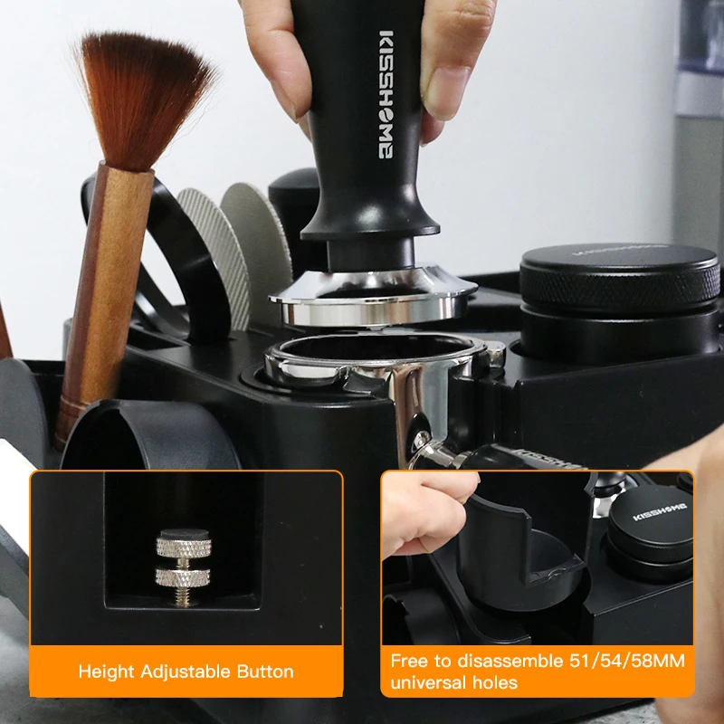 Station de tassage espresso réglable 51‑58 mm Vous pouvez l'utiliser avec des poignées de 51/54 mm lorsque la fente est en place, ou avec des poignées de 58 mm lorsque la fente est retirée. [Matériau]: Le support de presse à café est fabriqué en matériau PP, qui est léger et solide Accessoire Espresso Maison Stable Support Porte Filtre 51 58mm Station Tassage Café 7 En 1 - Compatible 51- 58mm - Base ABS Antidérapante Support Porte-filtre 51-58mm Station Tassage Café Barista Station Barista 7-en-1: La Station de Tassage offre un espace organisé pour divers outils de barista, incluant tasseur, distributeur de café et porte-filtre. Hauteur Réglable: Conçue pour s’adapter aux porte-filtres de toutes tailles, cette station supporte les accessoires de 51 à 58 mm. Accessoire Espresso Barista Maison Station Tassage Café 7 En 1 - Support Tamper 51/54/58mm Pour Delonghi EC680 EC685 - Organisation Barista Organisation Outils Expresso BaristaCette station de tassage, c'est le rêve de tout amateur de café ! En version 7 en 1, elle organise tous vos accessoires expresso : porte-filtre, tamper, distributeur... Le tiroir intégré range les petits accessoires... Grâce à ses compartiments intelligents, elle maintient votre plan de travail ordonné, simplifie la préparation et garantit un espresso parfait. Compatible 51-58 mm: Idéale pour les accessoires de café de 51 à 58 mm de diamètre, ses encoches sur mesure sécurisent tasseur et distributeur. Sa surface facile à nettoyer et sa finition premium en font un outil professionnel pour une préparation de café experte. Elle optimise l’extraction grâce à un tassage uniforme, indispensable pour les baristas.