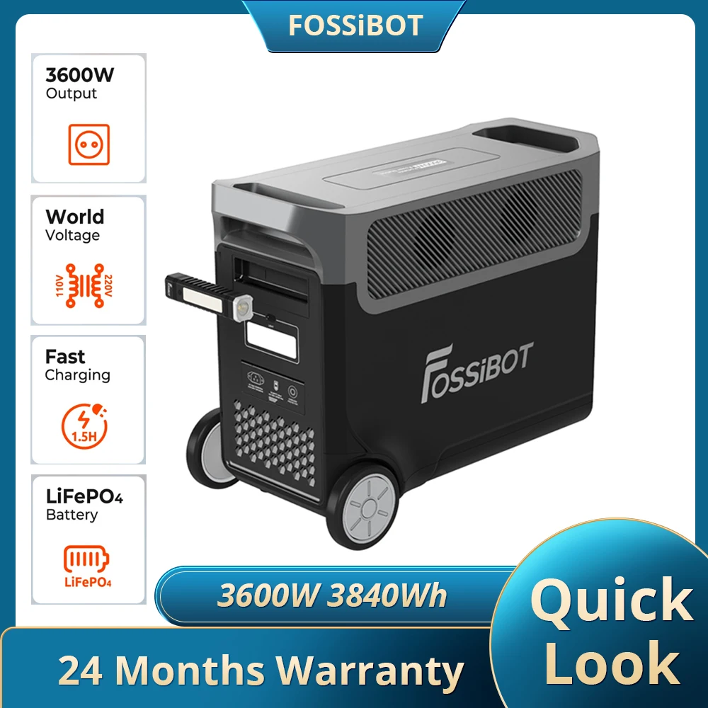 FOSSiBOT F3600 Generateur Electrique Solaire CA 3600W (7200W Pic) avec 2 panneaux solaires de 400W, Station Silencieux Portable 3840Wh LiFePO4, Onduleur Alimentation de Secours à Domicile Camping Station d'énergie portable haute capacité reposant sur une batterie LiFePO4 3840Wh, extensible par modules additionnels, destinée au camping, aux voyages en véhicule récréatif et comme alimentation de secours domestique Générateur LiFePO4 Camping Voyage FOSSiBOT F3600 Pro Station électrique Portable, Capacité 3840Wh, Batterie LFP 6500+ Cycles Générateur Solaire FOSSiBOT F3600 Pro FOSSiBOT F3600 Pro Générateur Solaire Portable, 3840Wh Station Électrique Portable LiFePO4 avec 3 sorties CA 230 V 3600W (crête 7200 W), stockage rapide de courant pour voyage et camping Powerful Output & Multiple AC Outlets : This electricity generator features 3 AC 230V outlets, providing 3600W continuous power and 7200W peak power. Test et Avis du Générateur Solaire Portable F3600 Pro... Clear Product Type : The FOSSiBOT F3600 Pro is a portable electricity generator (also a portable solar generator) integrated with a 3840Wh LiFePO4 portable power station, designed to deliver reliable electrical power for outdoor or emergency use. Durable LiFePO4 Battery & Solar Compatibility : Equipped with a high-quality LiFePO4 battery, this electricity generator ensures long service life and safe operation. It supplies stable power to charge phones, laptops, portable cooking appliances, and other daily or leisure devices. Rapid Current Storage : With rapid current storage functionality, this electricity generator can be recharged quickly, minimizing waiting time and ensuring fast energy availability whenever needed.