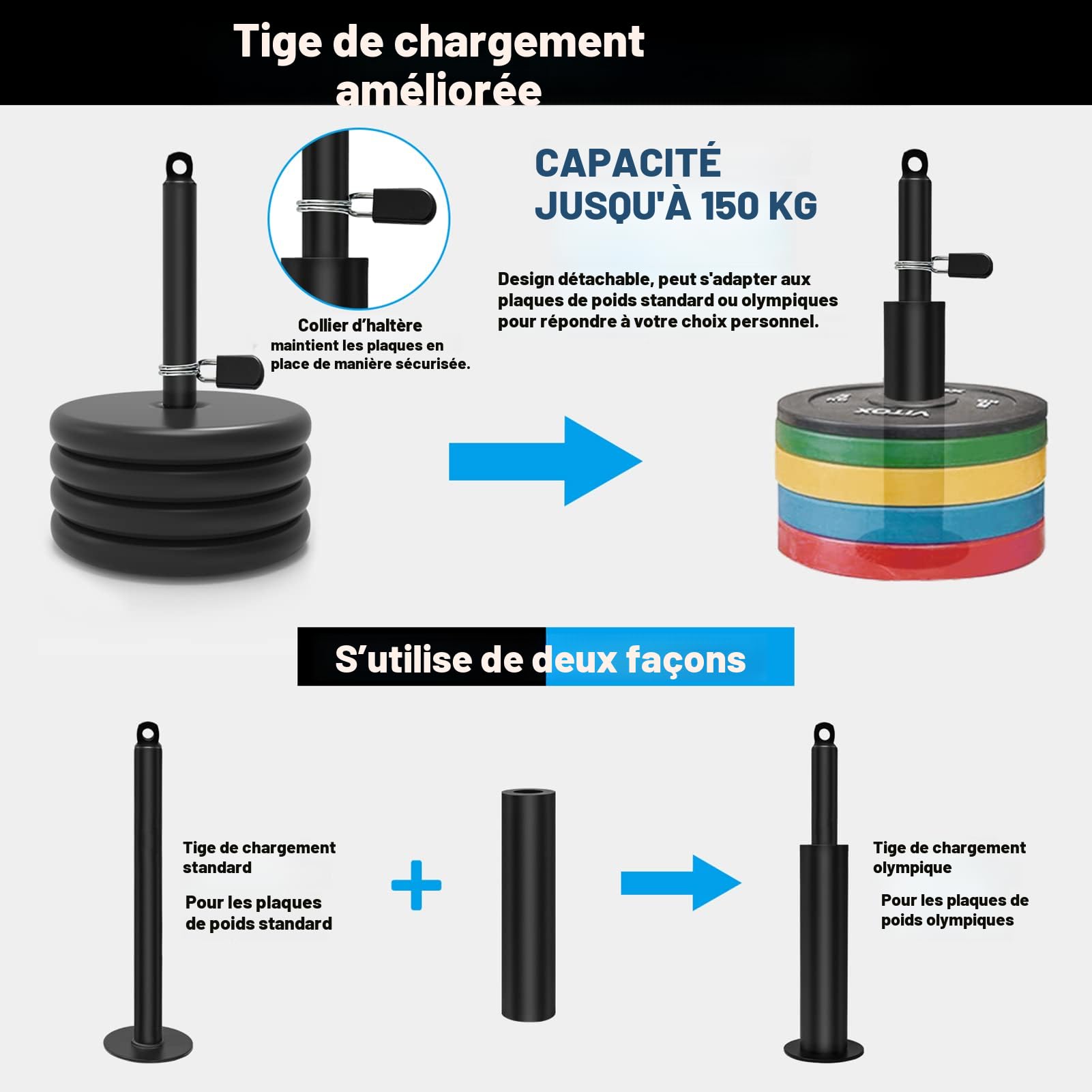 Description : Ce système de poulie se fixe facilement aux barres de musculation et permet un entraînement polyvalent qui cible différentes parties du corps. Utilisateurs recommandés : unisexe. Détails : Balle de gravité : ce design empêche le câble de bouger pendant l'exercice, vous offrant une expérience utilisateur confortable. L'installation facile permet une installation efficace dans une variété d'environnements d'entraînement et augmente la polyvalence et le confort de votre programme de fitness. Longueur du stylo de charge : 33 cm., Charge maximale : 100 kg. Longueur de la corde pour triceps : 67 cm. Entraînement Dos Bras Triceps Acheter Des Stations De Traction à Câble - Appareils De Musculation Professionnels Pour La Maison - Shark Fitness Kit Poulie Musculation Câble 2 M Charge 100 Kg Maison Salle Cble de traction LAT Cble de poulie de Fitness, 5mm d'épaisseur Assemblage nécessaire : oui. Il est fabriqué en fer robuste et en plastique de haute qualité pour vous assurer de la sécurité lors des séances d'entraînement intenses. Contenu de la livraison : 1 poulie., 1 câble., 1 sangle., 1 stylo de charge., 1 corde pour triceps., 3 boucles de levage., 1 clé à molette., 1 anneau de fixation., 2 vis en U., Remarques : 1., Veuillez vérifier soigneusement la taille avant de commander., 2., Les disques d'haltères ne sont pas inclus dans ce paquet., 3., Les mesures étant prises à la main, les tailles indiquées peuvent varier de 1 à 3 cm. Un câble métallique d'une longueur quelconque sert de moyen de traction. Le câble est guidé autour de la roue motrice au moyen de la poulie de pression et de celle de guidage, il est relâché quand la contrainte disparaît. Ce système de roue motrice est breveté Matériau : fer, plastique. 【Polyvalence】Ce système de poulie dispose de différents modes d'entraînement pour la traction et le levage qui vous aident à travailler votre haut du corps et vos muscles centraux tels que les muscles du dos, les bras et les abdominaux. Dimensions de l'emballage : 36 x 14 x 8 cm., Poids brut : 2 kg. KO7167 cble de traction LAT Cble de poulie de Fitness, 5mm d'épaisseur... La longueur de la corde réglable vous permet d'ajuster l'appareil à votre taille et d'obtenir de meilleurs résultats d'entraînement. Il peut être installé sur des barres de traction, des poutres et partout où la bande peut être installée. Caractéristiques techniques : Couleur : noir., Style : moderne.