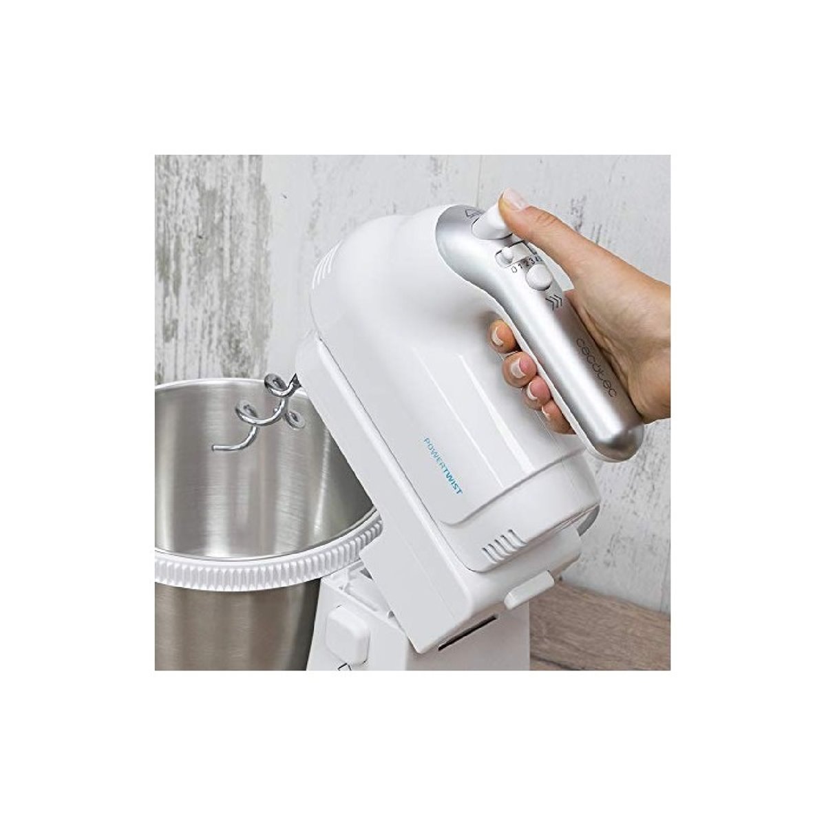 Cecotec Robot pâtissier PowerTwist 500 - Electroménager Cecotec PowerTwist 500 Steel Konyhai Robotgép 500W Batteur électrique 500W Cecotec Batteur à Main PowerTwist 500 Full Steel. 500 W, 5 Vitesses Plus Fonction Turbo, 3 Accessoires : Fouet Ballon, Fouets Et Crochets Pétrisseurs. Design Ergonomique - Blender - Achat & Prix Batteuse Electrique Cuisine Batteur à fouets pour battre, mélanger, monter, remuer et pétrir facilement, obtenant d’excellents résultats. Inclut un fouet ballon en acier inoxydable pour des mélanges parfaits et dispose de 5 niveaux de vitesse ainsi que d’une fonction turbo. Batidora de Varillas PowerTwist 500 Full Steel. 500 W, 5 Velocidades más Función Turbo, 3... Batteur électrique pour battre, mélanger, monter, remuer et pétrir, obtenant des résultats dignes de la haute cuisine. Bouton QuickOut pour un retrait facile des accessoires et éviter de se salir les mains, design ergonomique pour une prise en main confortable et sûre du batteur. Les matériaux du batteur sont sans BPA. Conçue pour pouvoir être maintenue en position verticale pendant son utilisation afin de ne pas salir le plan de travail.