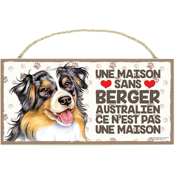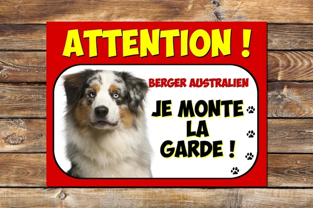 Pancarte Attention Au Chien Plaque Attention Chien En Métal - Berger Australien (15x20cm) Panneau Attention Chien Dangereux Le Berger Australien Rouge Merle et Blanc mis en valeur sur votre porte d'entrée par une pancarte qui affiche que votre chien surveille la maison. Ce panneau est idéal pour prévenir visiteurs, passants, démarcheurs et invités, mais aussi dissuader les voleurs et autres cambrioleurs qui entreraient alors à leurs risques et périls Panneau Sécurité Extérieur 15x20cm Panneau Danger Chien De Garde - Sticker Communication, Panneau Chien De Garde Plaque Maison Plaque attention au chien Berger Australien monte la garde à la maison. Si personnalisation avec prénom (1 seul car la plaque est au singulier, contactez moi si plusieurs). Berger Hollandais, Plaque portail Je Monte la Garde panneau Attention... Taille : 15x20cm - Bonne résistance aux intempéries. D'autres modèles et autres thèmes disponibles dans ma boutique. Produit artisanal, fait main Plaque chien monte la garde.