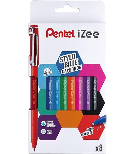 Stylo Pointe 1mm Encre Fluide Pentel BXC470-DC Stylo à Bille IZee, 4 Couleurs, Couleurs Au Choix Stylo Bureau écriture Douce Stylo bille discret, simple et efficace. Le stylo bille à capuchon Pentel Izee possède une encre liquide à faible viscosité qui garantit une grande douceur d'écriture. Son corps à la couleur de l'encre offre une zone de préhension en forme d’alvéoles creusées pour une expérience d'écriture agréable Pentel iZee - Stylo à bille 4 couleurs Pas Cher | Bureau Vallée Un design sobre et élégant grâce à son corps effet mat. Pentel - Pack 2 Recharges pour stylo à bille iZee capuchon - 1mm... Encre effaçable : Non Design élégant avec zone de préhension en forme d'alvéoles creusées, clip métal et corps mat., Pointe large 1 mm. Corps et monogramme à la couleur de l'encre., Rechargeable. Stylo bille à capuchon iZee BX460., Encre à faible viscosité procurant une grande douceur d'écriture, des couleurs vives et denses.