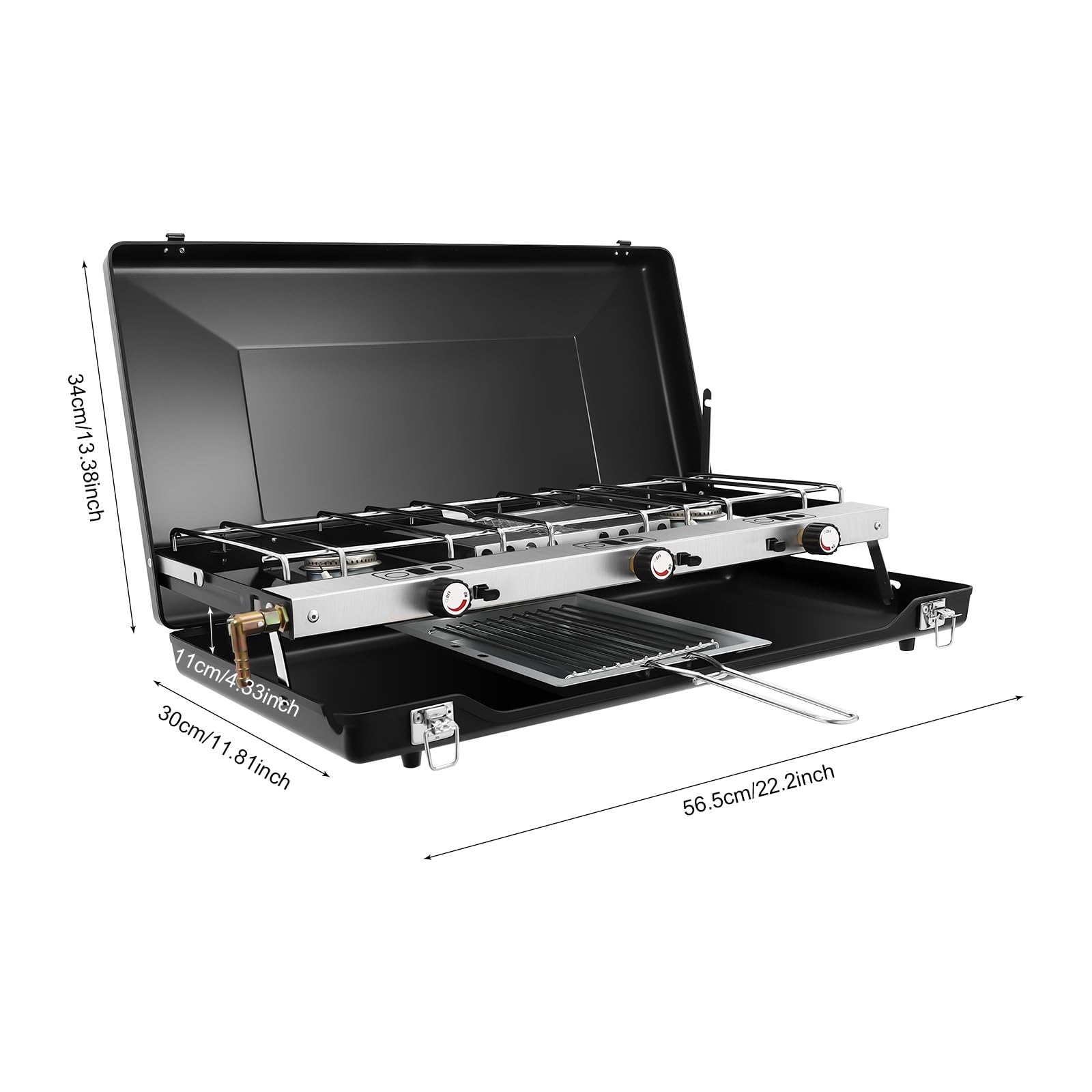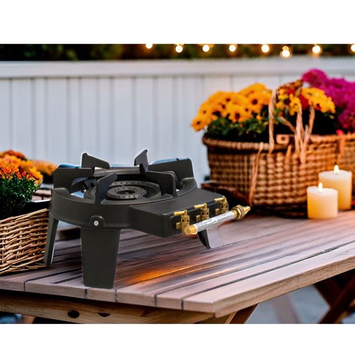 【Cuisson Efficace】: Avec 3 brûleurs et une puissance élevée de 1,5 kW par brûleur, le produit peut fournir un chauffage rapide et uniforme pour trois positions de cuisson simultanément, de sorte que vous pouvez profiter rapidement de la nourriture délicieuse. Type d'allumage : allumage piézoélectrique. Réchaud Gaz 3 Brûleurs Portable Sultan Réchaud à Gaz 3 Brûleurs - Plaque De Cuisson à Gaz 3 Feux à Prix Réchaud à Gaz Extérieur Barbecue Gaz Rogue RB425 RSBPK 3 Brûleurs Réchaud Lateral Brûleur... Type de gaz : propane à 37 mbar, butane à 28-30 mbar. Description : Un barbecue portable et puissant est un élément indispensable de l'équipement pour les soirées de camping en plein air. Spécifications : Couleur : noir. 【Structure monobloc 】: sans exigences d'installation et de montage, il vous suffit de brancher le combustible (non inclus) et vous pouvez l'utiliser. Dimensions de l'emballage : 61 x 34 x 11 cm., Poids brut : 4,5 kg. Ce réchaud de camping pliable à 3 feux est fabriqué à partir de matériaux de haute qualité et se caractérise par son poids léger et sa durabilité, ce qui en fait un bon choix pour vous. Le couvercle sert de protection contre le vent pour la répartition de la chaleur et de protection, afin que vous puissiez cuisiner même par mauvais temps. Détails : Pieds antidérapants : ils donnent au produit une prise stable et empêchent le produit de glisser pendant la cuisson, de sorte que votre cuisson est stable et sûre. Optez pour un réchaud à gaz 3 feux pour cuisiner en plein air avec facilité. Profitez d'une cuisson rapide et précise grâce à ses brûleurs puissants. Compact et portable, ce réchaud vous accompagnera lors de vos aventures en camping ou en randonnée Contenu de la livraison : 1 réchaud de camping portable 【Léger et portable】: Grâce à son design pliable, son poids léger (moins de 9,92 lbs) et sa poignée stable, vous pouvez facilement le transporter pour une activité de camping. Avec une grille amovible, un plateau et trois brûleurs indépendants intégrés avec contrôle du feu, il est assez puissant pour cuisiner et griller avec facilité afin que vous puissiez profiter du plaisir du camping et de la cuisine. Réchaud 7000w à gaz fonte 3 robinets 3 pieds - Provence Outillage