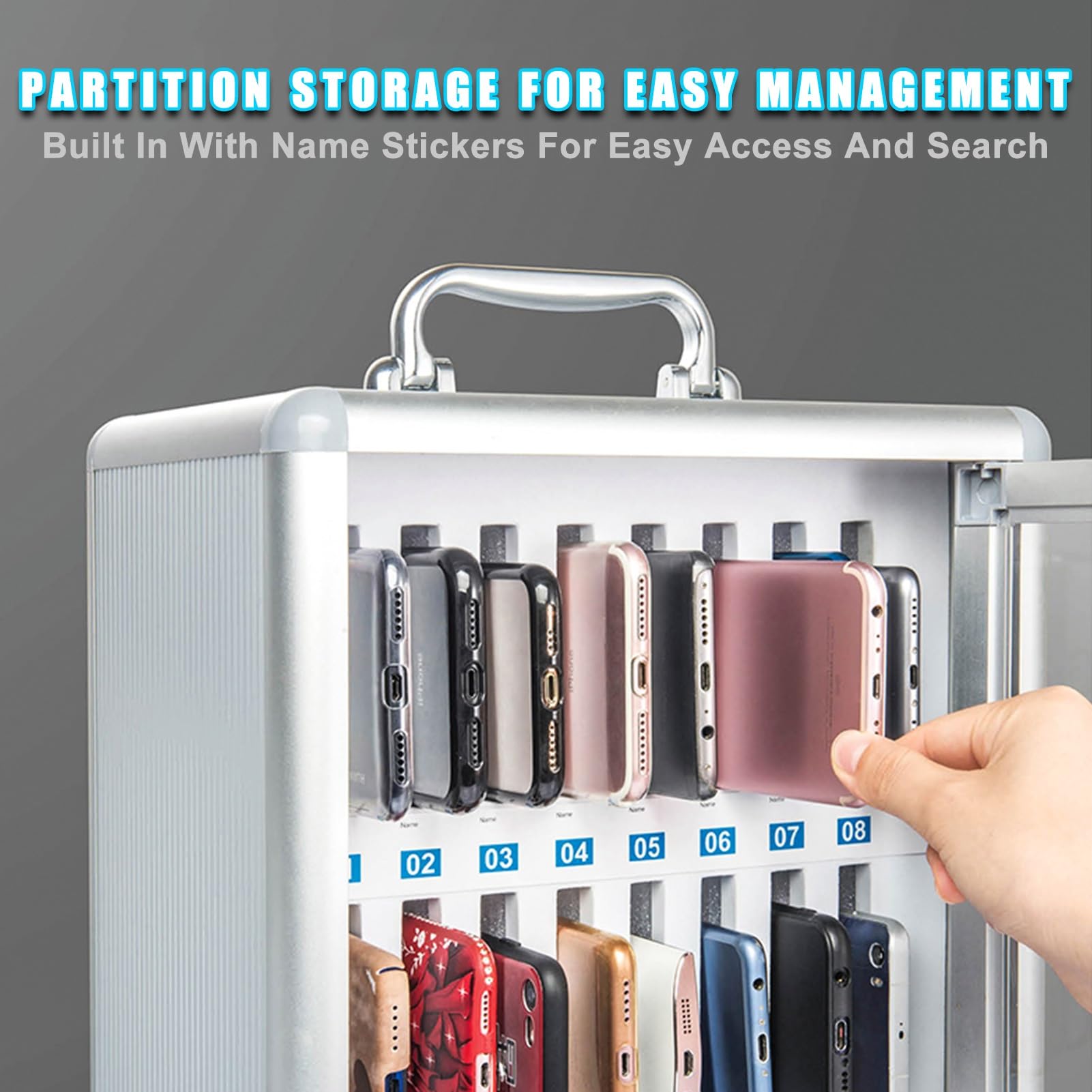 PEBFHSQW Coffre-Fort pour Téléphone Portable 12 À 60 Conception numérique, facile à trouver, pas facile à confondre, facile à gérer. Casier Mural Bureau Pour Téléphones Sunshine-Sonew Boîte De Rangement De Bureau En Bois Boîte De Rangement Pour Téléphone Portable Boîte Sécurité Téléphone école 【Gestion du téléphone portable】La boîte de rangement pour téléphone portable est en coton perlé, qui n'est pas facile à rayer et à porter. Casier de rangement pour téléphone portable dédié aux écoles, collèges et lycées lié à l'interdiction d'utilisation des smartphones et autres terminaux de communication électronique comme les tablettes par exemple ou encore les montres connectées dans l'enceinte des établissements scolaires Rangement multiple pour téléphone]Cet étui de rangement peut accueillir jusqu'à 12/24/36/48/60 emplacements pour téléphone, pour un rangement facile et... 【Matériel sélectionné】L'organisateur de l'armoire à clés est fabriqué en alliage d'aluminium épais et robuste, qui est durable et difficile à casser, vous n'avez pas à vous soucier de la sécurité de votre téléphone Conception portable et portable, avec verrou de sécurité, plus sécurisé. 【Facile à utiliser】 Grâce à son autocollant numérique, il est facile à retrouver. 【Stockage de téléphone multiple】Cet étui de rangement pour téléphone peut contenir jusqu'à 12/24/36/48/60 emplacements de téléphone, gardant votre téléphone organisé et facile à ranger. 【Largement utilisé】: La conception de la boîte de rangement pour téléphone portable convient aux salles de conférence de bureau, aux usines, aux écoles, aux hôpitaux, aux entreprises, aux troupes, aux établissements de formation, etc. √ Différentes méthodes de mesure ont des tailles légèrement différentes.