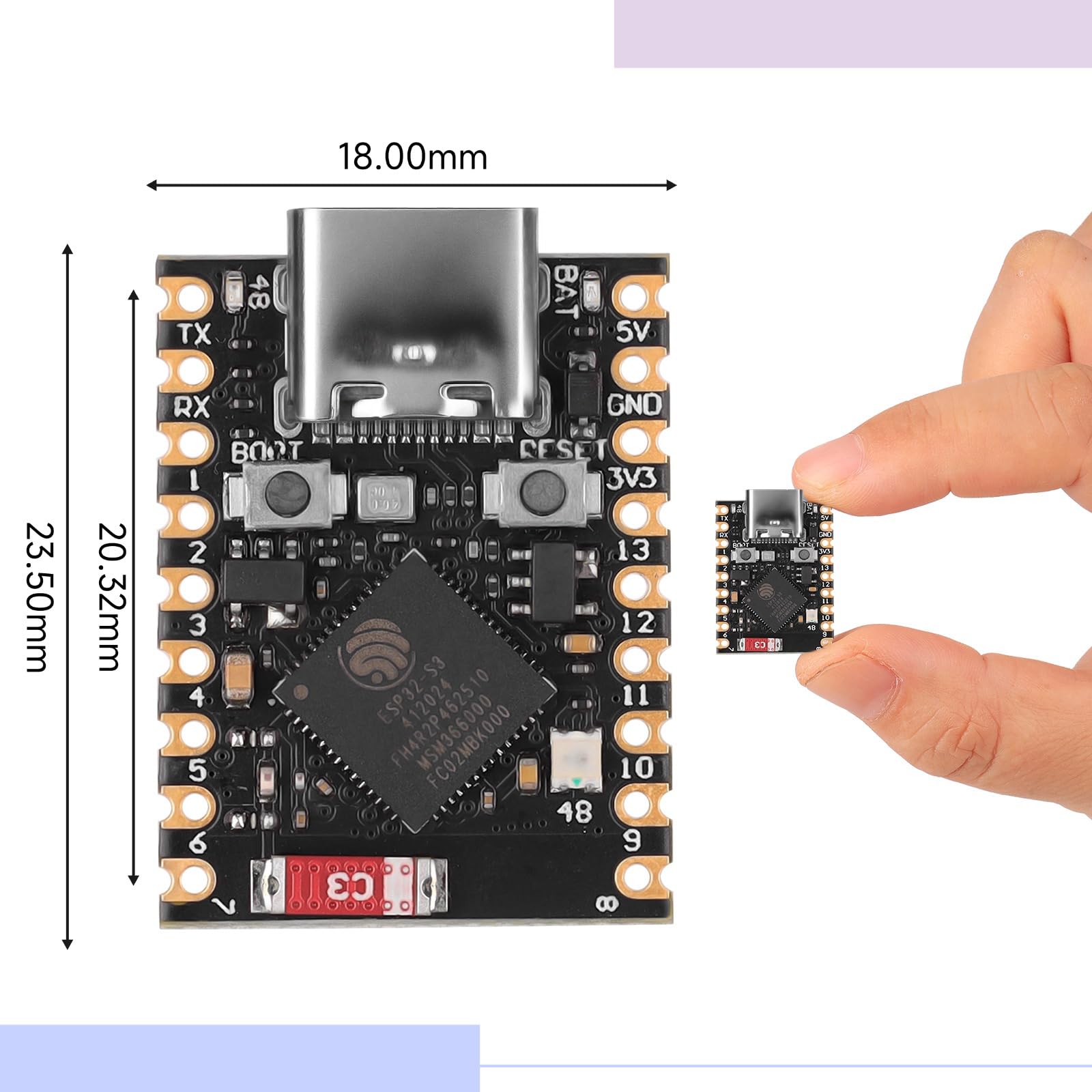 Carte ESP32 Compacte GPIO SuperMini ESP32 S3 Lot De 3 Cartes De Développement Carte Programmable MicroPython Nous avons une connaissance approfondie de l'industrie et un inventaire suffisant. Cela nous permet de fournir un support technique complet et polyvalent à nos clients Carte de développement ESP32-C3 SuperMini V2 Plus pour MicroPython on Options d'interface étendues : équipée d'une variété d'interfaces, y compris 11 broches GPIO (PWM), 4 broches ADC, UART, I2C et SPI, cette carte offre une grande flexibilité lors de la connexion de capteurs, caméras et modules, permettant aux développeurs de réaliser facilement des projets complexes. Pour la Carte de DéVeloppement Maix Duino K210 RISC-V AI LOT Module... Notre support client dédié garantit que vous obtenez l'assistance dont vous avez besoin tout au long de votre phase de développement. Connectivité polyvalente : cette mini carte de développement prend en charge IEEE 802., 11 b/g/n WLAN et Blue Tooth 5., 0 (BLE), ce qui la rend idéale pour les applications portables sans fil et les environnements IoT à faible consommation d'énergie. Grâce à son montage en surface unilatéral et à sa construction légère, il s'intègre facilement dans diverses applications, y compris la robotique innovante et la technologie portable. Description du produit Paramètres du produit :