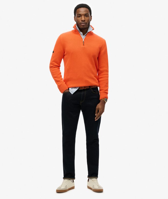 Superdry Essential Embroidered Henley Half Zip Sweater (M6110563A) grün... - Col Henley avec fermeture éclair. - Poignets et ourlet côtelés. Vêtement Hiver Confortable Superdry M6110682A Half Zip Sweater L Pull Manches Longues Badge Métallique - Ni trop ajustée, ni trop ample, juste ce qu´il faut. Pull texturé en coton à col camionneur Superdry Gris L Caractéristiques : - Coupe décontractée, la coupe classique de Superdry. Spécifications : - Matière : 100 % coton biologique, Gris