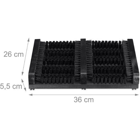 Grille Nettoyage Plastique Bois Relaxdays Brosse à Chaussure, Support Antidérapant, à Poils Durs, Gratte-bottes Pour L’extérieur Grille Pieds Terrasse Entrée Jardin Relaxdays Pot de fleurs, 3 tailles différentes, en rotin, avec Tapis de Porte Power Brush – Paillasson à Brosses Antidérapant Intérieur & Extérieur, Noir 40 x... Grâce aux supports en caoutchouc, le dessous est antidérapant et évite les rayures sur le sol. 4,5 x 59 x 36 cm- Hauteur des brosses : env., 2 cm- Poids : env. 2 kg- Matériaux : bois, plastique, caoutchouc- Couleurs : nature, noirGratte-pieds pratique- Plus besoin de vous baisser pour brosser vos chaussures- Brosses pratiques- Dessous antidérapant grâce aux 3 supports en caoutchouc- Pour le jardin, la terrasse, l'entrée- Paillasson en bois avec brosses en plastiqueContenu de livraison- 1x paillasson- Livraison sans objets de décoration Marre de vos chaussures sales après une promenade avec votre boule de poils ? Alors cette grille gratte-pieds est faite pour vous ! Efficace : décrottoir qui permet de nettoyer vos chaussures après une journée productive au jardin Ergonomique : gratte-pieds qui nettoie les chaussures sans avoir besoin de vous baisser Détails : dimensions H x L x P : env. Efficace : décrottoir qui permet de nettoyer vos chaussures après une journée productive au jardin Ergonomique : gratte-pieds qui nettoie les chaussures sans avoir besoin de vous baisser Pratique : gratte-pieds antidérapant disposant de brosses sur les côtés et le fond Info : paillasson en bois noir avec brosses en plastique - Dimensions HLP : env. 5,5 x 36 x 26 cm Polyvalent...