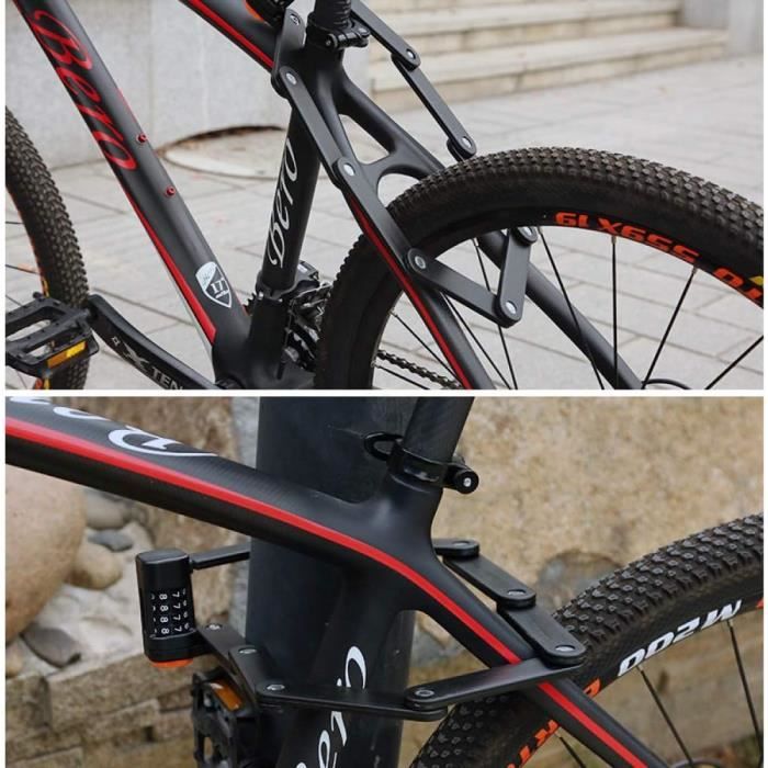 Tout est ici conçu pour la robustesse et est ainsi travaillé. Anti Vol Velo Pour Vélo - 5mm Acier Trempé, 8 Maillons, 696g - Avec Support Et 3 Clés Serrure... Il peut également être fixé au vélo avec des sangles. Et il sera plus facile et plus rapide d'utiliser la serrure à combinaison sans avoir à transporter une clé avec vous. Une seconde pour enregistrer, deux secondes pour plier, plus pratique et plus rapide. Bien sûr, vous devez vous rappeler la combinaison ou la prendre en photo avec votre téléphone portable si vous l'oubliez. Spécifications: Matériau: Acier allié, ABS Dimensions plié: 15 x 5,5 x 4 cm / 5,91 x 2,17 x 1,57 pouces Longueur du cadenas: 85 cm Poids: Environ 800 g Couleur: Noir Contenu de la Livraison: 1 x Antivols pliables pour vélo Caractéristiques du Produit: Les cadenas de vélo ordinaires à faible sécurité ne sont pas sécurisés car ils peuvent être facilement crochetés ou sciés. Qualité Supérieure, Design Pratique: Grâce à la conception spéciale de son support, l'antivol pliable pour vélo se fixe facilement partout à l'aide des sangles et des supports fournis, ce qui vous permet de l'emporter facilement lors de vos excursions ou de vos déplacements. Antivol vélo Antivols vélo niveau de sécurité 14 Antivol pliable Design Pliable: Le cadenas pliable est compact et facile à transporter. Une fois déplié, il mesure 85 cm de long, ce qui convient à la plupart des situations de verrouillage, vous n'avez donc pas à vous soucier de la longueur de la chaîne. Antivols Pliables Support Cadre Vélo Antivol Velo Pliable ACCWORK - Cadenas Haute Sécurité 85cm Avec Support - Pour VTT, Vélo Electrique, Scooter Antivol Haute Sécurité Antivol Velo Electrique Notre antivol pliable est également une nouveauté, il se plie à 15 cm de long, ce qui correspond à peu près à la taille d'un téléphone portable, facile à transporter. Le verrou de mot de passe pliable portable est universel et adapté pour les vélos, les vélos de montagne, les scooters, les cyclomoteurs, etc. Technologie de rivet renforcée, résistance à haute tensibilité, flexible, facile à plier, petite taille après pliage, facile à transporter, avec un manchon de verrouillage. ENGWE Cadenas Antivol Pliable Pour Vélo Électrique Avec 8 sections pliables et a une longueur de 15 cm une fois plié, ce qui correspond à peu près à la taille d'un téléphone portable et le rend encore plus pratique. Sa construction étanche, incassable et résistante à la rupture vous offre une sécurité fiable pour votre vélo. Application Polyvalente: Notre serrure à combinaison n'est pas seulement sûre, mais aussi élégante. La longueur totale une fois dépliée est de 85 cm, ce qui le rend adapté à de nombreuses occasions. Sécurité et Antivol: L'antivol de vélo est fabriqué en acier trempé à haute résistance, solide et résistant aux coupures pour résister aux fermetures violentes. Afin que vous puissiez vous concentrer sur des choses vraiment importantes au quotidien et que vous n'avez pas à vous soucier de votre vélo, les éléments de maillon particulièrement étroits aux points de rivet vous promettent que le cadenas est stable, robuste et extrêmement sûr.
