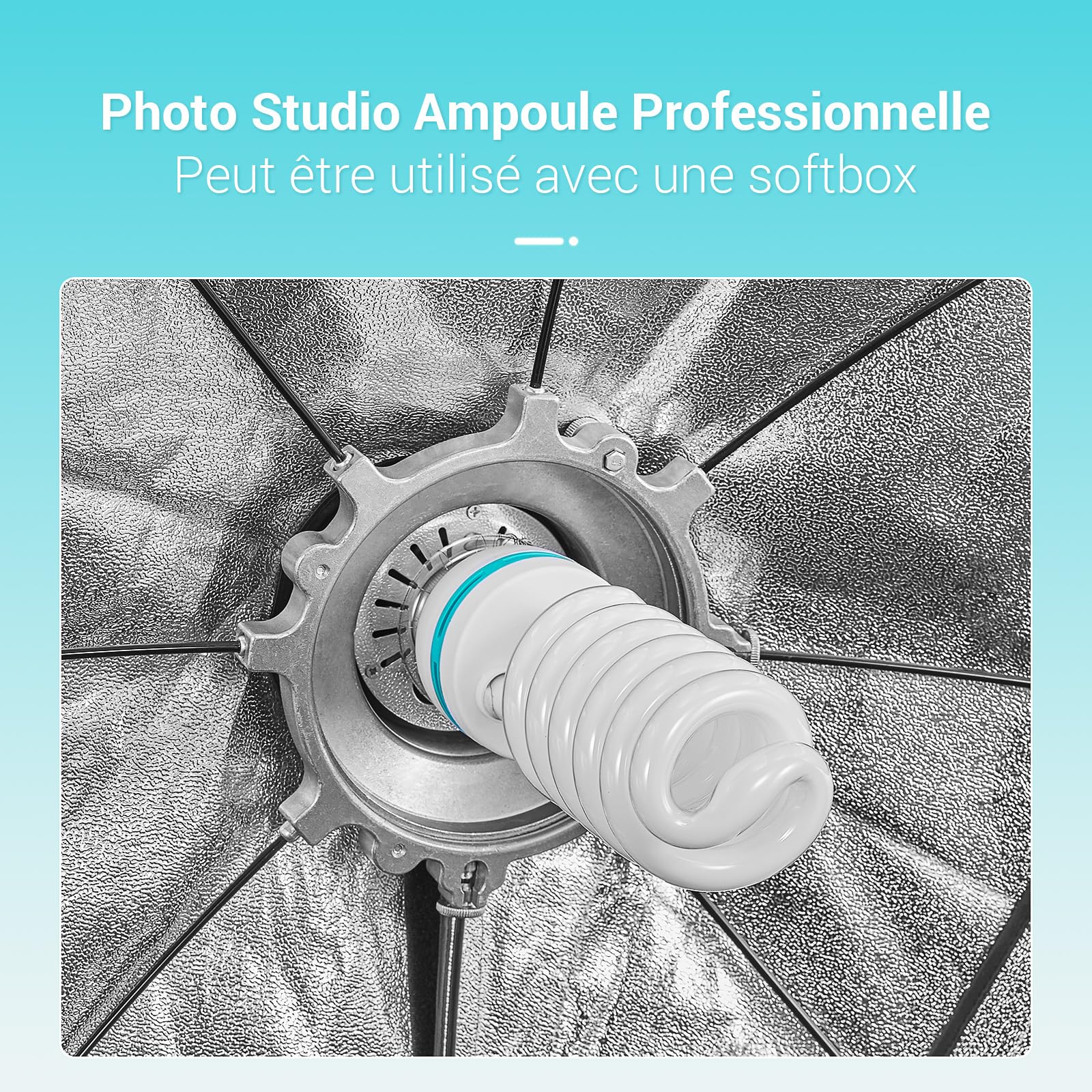 2 x 135W 5500K E27 Photo Studio Ampoule Vidéo Lumière Blanche Phographie Lumière du Jour Lampe de l'ampoule E27 135W Ampoule Eclairage Continu pour Softbox Parapluie Lampes Studio E27 2 Pièces/1 Pièce E27 Douille Softbox Lampe Photographique Ampoule Support De Base Adaptateur Pour Studio Photo Remplissage Lumière Support De Base Pour Trépied Douille Lampe E27 Avec Support Douille polycarbonate pour culot G5 Types : lumières de photographie passeport Peso - ampoule led culot e27 pour lampe peso en France | Clasf maison... L'adaptateur orientable dans toutes les directions vous permet d'obtenir la lumière où vous devez même dans des angles difficiles Modèle : douille de lampe simple
