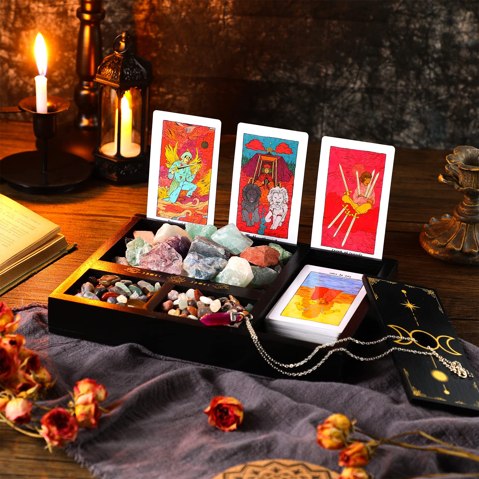 Porte-carte Tarot Cristaux Bougies Support De Carte De Tarot, Support D'autel Pour Planche Tarot Accessoire Tarot Gravé Lune Beavorty Support de carte de tarot en bois pour tarot, autel Support, planche, plateau trage cartes tarot ou oracle en bos gravé... Le support d'autel de la planche de tarot est conçu avec des rainures à triple phases de lune pour ranger des cristaux, des bougies et d'autres objets de valeur, qui montrent 3 moments distincts dans le cycle des phases de lune, qui symbolisent l'énergie, l'intelligence et la confiance. Spécifications :Matériau : boisTaille du produit : 20,3 x 7,6 cmPoids du produit : 120 gContenu de l'emballage :1 x support de carte de tarot Le support de cartes de tarot offrira non seulement un moyen simple et élégant d'afficher vos lectures passées, présentes et futures, vos cartes de divination ou vos cartes de citations inspirantes, mais rendra également l'affichage des cartes et la photographie plus attrayants visuellement. Caractéristiques :Le support de carte de tarot est fabriqué en bois, durable et a des faces lisses, pas faciles à casser et à déformer, des rainures de lune sculptées pour les précieux, met en valeur la spiritualité et la magie de la nature magnifique. La fente du support de cartes de tarot mesure 3 mm de largeur, ce qui peut fournir un endroit stable pour ranger vos cartes de tarot. Le plateau décoratif de lecture de tarot en bois est un cadeau parfait pour une sorcière ou un lecteur de cartes de tarot. Vous pouvez vous connecter avec d'autres lecteurs de cartes et participer à des rituels magiques pour créer votre vie idéale et rester positif. Cadeau idéal : Ce porte-cartes est idéal pour les amateurs de divination, de méditation, de décorations en bois ou de présentation de cartes. Offrez-le à votre fiancée, votre famille, vos amis ou vos collègues pour la Saint-Valentin, la fête des Mères, la fête des Pères, Thanksgiving ou le Nouvel An