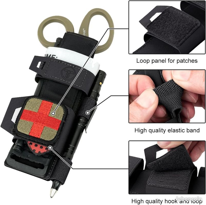 【ACCÈS RAPIDE】: Notre support de garrot tactique vous permet d'accéder au garrot en quelques secondes, ce qui vous permet de faire de gros efforts plus facilement, surtout en cas d'urgence. et convient à la plupart des garrots. Par exemple, randonnée, camping, vélo, alpinisme, etc. Les sangles de rétention élastiques maintiennent le garrot fermement en place tout en permettant un déploiement rapide d'une seule main. Garrot C-A-T® GEN 7 - Tourniquet d'urgence tactique Petit et léger, imperméable et facile à nettoyer, facile à transporter et à ranger , pratique à utiliser. Remarque : ciseaux et garrot NON inclus., Remarque : 1., En raison de la mesure manuelle, il peut y avoir une erreur de 1 à 2 cm. 2pcs - garrot militaire de nouveau Design tactique d'urgence d... 【COMPATIBLE AVEC LE SYSTÈME MOLLE】: Le support de garrot tactique a une sangle arrière avec une boucle en métal. Spécification : Matériau : Nylon Couleur facultative : noir, kaki, vert armée, gris Taille : 17,5 x 5 cm / 6,88,96 pouces Le forfait comprend : 1 x sac de garrot (les autres accessoires de démonstration sur la photo ne sont pas inclus). 【APPLICATIONS】: Le sac de garrot MOLLE est principalement utilisé pour les besoins de sauvetage en plein air. Garot A Tourniquet Support De Garrot Tactique D'urgence De Camping En Plein Air Porte Garrot Garrot Militaire Combat Plein Air Tourniquets D'Urgence À Une Main... Notre sac à garrot tactique est l'aide parfaite pour vos activités de plein air.