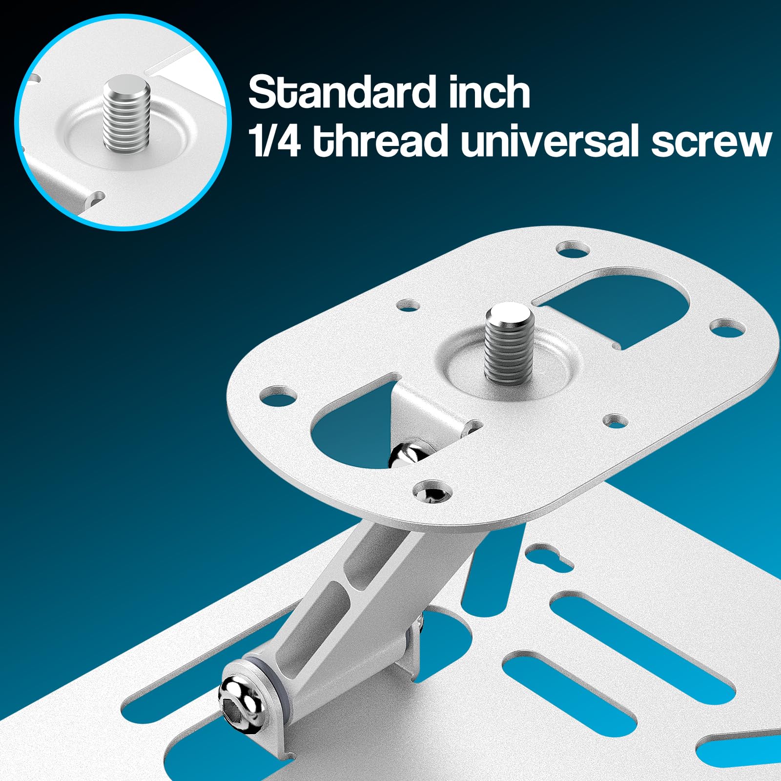 Support pliable pour projecteur, support pliable ultra compact avec Le design pliable lui permet de s'adapter aux espaces restreints dans les petits appartements ou aux installations étendues dans les grandes salles de conférence. Montage Bureau Mur Plafond Support De Projecteur De Bureau, Support Pliable Avec Vis De 6,35 Mm Support Plafond Mur Table Projecteur Support de projecteur pliable et réglable : ce support mural innovant pour projecteur dispose d'un angle réglable à 380°, offrant une flexibilité inégalée pour une expérience visuelle parfaite. Support universel pour projecteur de plafond. - Test et Avis J'ai acheté ce support mural Salange pour mon projecteur et je dois dire que c'est une belle surprise ! Le design en métal argenté donne tout de suite une impression de qualité et de robustesse. L'installation s'est faite très facilement grâce au pas de vis universel 1/4, compatible avec la plupart des projecteurs. Une fois fixé, le support reste stable et ne bouge pas, même... 【Support de projecteur facile à installer】Notre support de projecteur polyvalent offre trois options d'installation sans tracas : montage sur bureau, mur ou plafond, sans perçage ni dommage mural. Qu'il soit utilisé comme support de plafond pour projecteur ou support de bureau, il offre un champ de vision plus large et des angles de projection supérieurs. La base triangulaire renforcée maintient votre projecteur stable, éliminant les secousses pour une expérience visuelle homogène. Avec une taille de base de 15 cm x 12 cm et une taille supérieure de 8 cm x 5,5 cm x 7,5 cm, c'est une solution idéale pour une installation polyvalente dans n'importe quel environnement. Compatibilité universelle du filetage 6,35 mm : conçu avec une interface filetée standard de 6 mm, ce support de projecteur est compatible avec une large gamme d'appareils, y compris les lampes vidéo LED, les appareils photo et les supports de téléphone, pas seulement les projecteurs. Que vous soyez au bureau, à la maison ou en voyage, ce support de projecteur léger garantit une expérience de projection de haute qualité n'importe où.