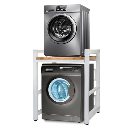 Support empilable pour lave-linge avec étagère, 3 hauteurs Des barres de support supplémentaires permettent à l'ensemble lave-linge-séchant empilable de supporter jusqu'à 250 kg. Meuble Lave-linge Empilable Support Empilage Lave-linge Meuble Étagère Machine à Laver MSFE - 3 Hauteurs Réglables, Charge 350kg - 73x64x110cm - Breveté Meuble Superposition électroménager Meuble Lave Vaisselle Il est également doté d'une barrière de sécurité surélevée pour éviter les chutes et les dommages. Des barres de support supplémentaires permettent à l'ensemble lave-linge-séchant empilable de supporter jusqu'à 350 kg. Rangement pratique et multicouche Étagère de rangement de salle de bain à 3 niveaux, peu encombrante, pour support de toilette supérieur ou machine à laver, support de machine à laver en bois E1 et acier ▶Assemblage facile : Le meuble lave-linge est livré démonté avec notice et doit être assemblé. Le niveau supérieur peut accueillir lessive, assouplissant et autres produits de toilette, tandis que le niveau inférieur accueille les paniers à linge et les produits d'entretien. Remarque : Ce produit ne comprend qu'une seule étagère ; le lave-linge et le sèche-linge sont uniquement destinés à être exposés. La surface peinte protège contre la rouille et assure une longue durée de vie. Cette disposition astucieuse permet de ranger les articles de la buanderie de manière organisée et facilement accessible. ▶ Matériaux de haute qualité : Support Machine a Laver, composé de tubes carrés épais en acier au carbone, assure la stabilité et minimise les vibrations.