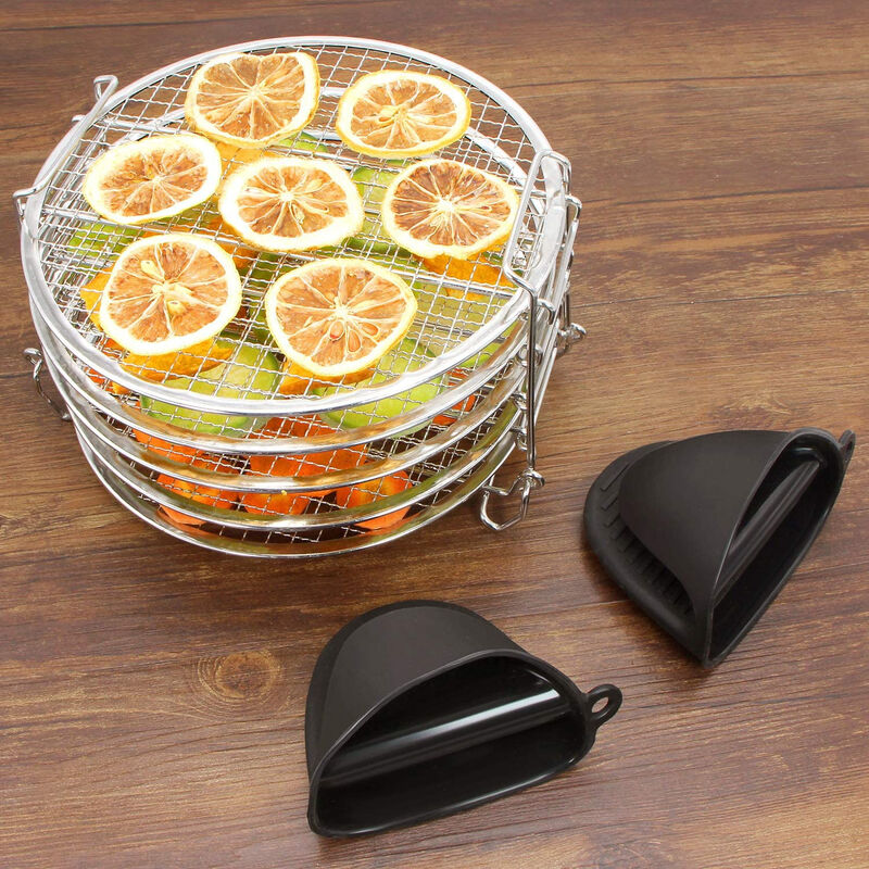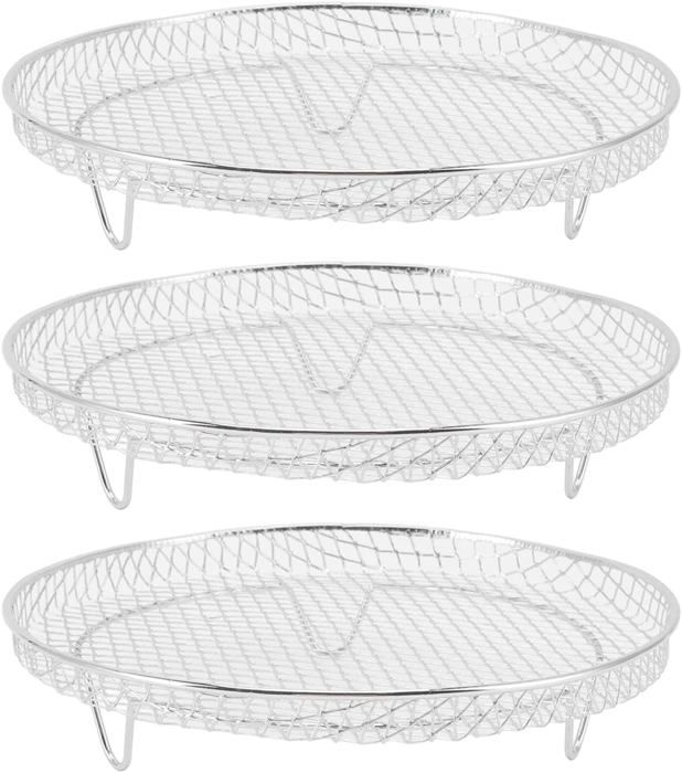Plateaux Acier Inox Empilables Fournitures Friteuse À Air Support En Acier Inoxydable Accessoires Déshydratation Fruits Viande Support Rond Pour Friteuse À Air Comprimé Compatible Avec Ninja Friteuse À Air Chaud Pour Friteuse À Air Chaud Avec Double Panier... Recommander l'utilisation dans le pot qui est plus grand que 8,5 pouces de diamètre) Emballage inclus: 1x support de déshydrateur alimentaire 【Haute qualité】 Le support de déshydrateur en acier inoxydable 304 de qualité alimentaire de haute qualité, robuste et non bancal, sûr et durable pour une utilisation de longue durée; Venez avec la conception d'ourlet lisse élimine les bavures rugueuses sur les bords, protégez vos mains des rayures; 【Cinq couches empilables】 Il y a 5 plateaux amovibles qui offrent beaucoup d'espace pour sécher tout, des fruits et des viandes, et le motif de grille étroite du support de déshydrateur garantit que même vos fruits et viandes les plus délicats ne s'affaissent pas, ne tombent pas ou ne tombent pas tout en restant appropriés circulation d'air; (Tous les conteneurs plus grands que la taille de ce support peuvent l'utiliser. 【Facile à utiliser et à nettoyer】 Ce support de déshydrateur pour friteuse à air est compact et chaque étagère a été bien déshydratée uniformément en peu de temps, un bon flux d'air, facile à utiliser et à ranger, bien et se replie ensemble, le nettoyage est facile. Tous les plateaux vont au lave-vaisselle et le boîtier peut être facilement essuyé avec un chiffon humide; Un grand essentiel dans la cuisine, largement applicable pour refroidir les pâtisseries, cuire la viande et la volaille, déshydrater le porc / bœuf séché, les fruits et légumes, etc. Description de Support de déshydrateur en acier inoxydable pour Ninja Foodi 6,5 et 8 pintes Déshydratation optimale : Ce support de déshydrateur de 23,4 cm de diamètre et 25,4 cm de hauteur est doté de cinq niveaux empilables, parfaits pour déshydrater simultanément une variété d'aliments