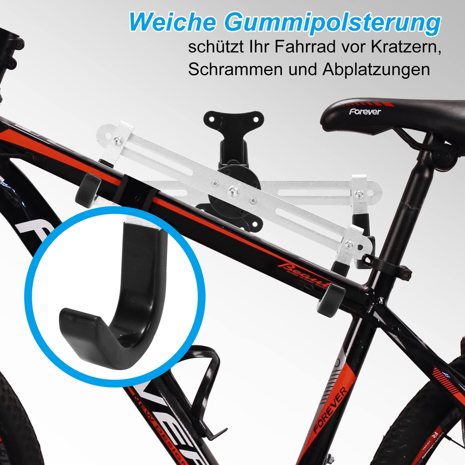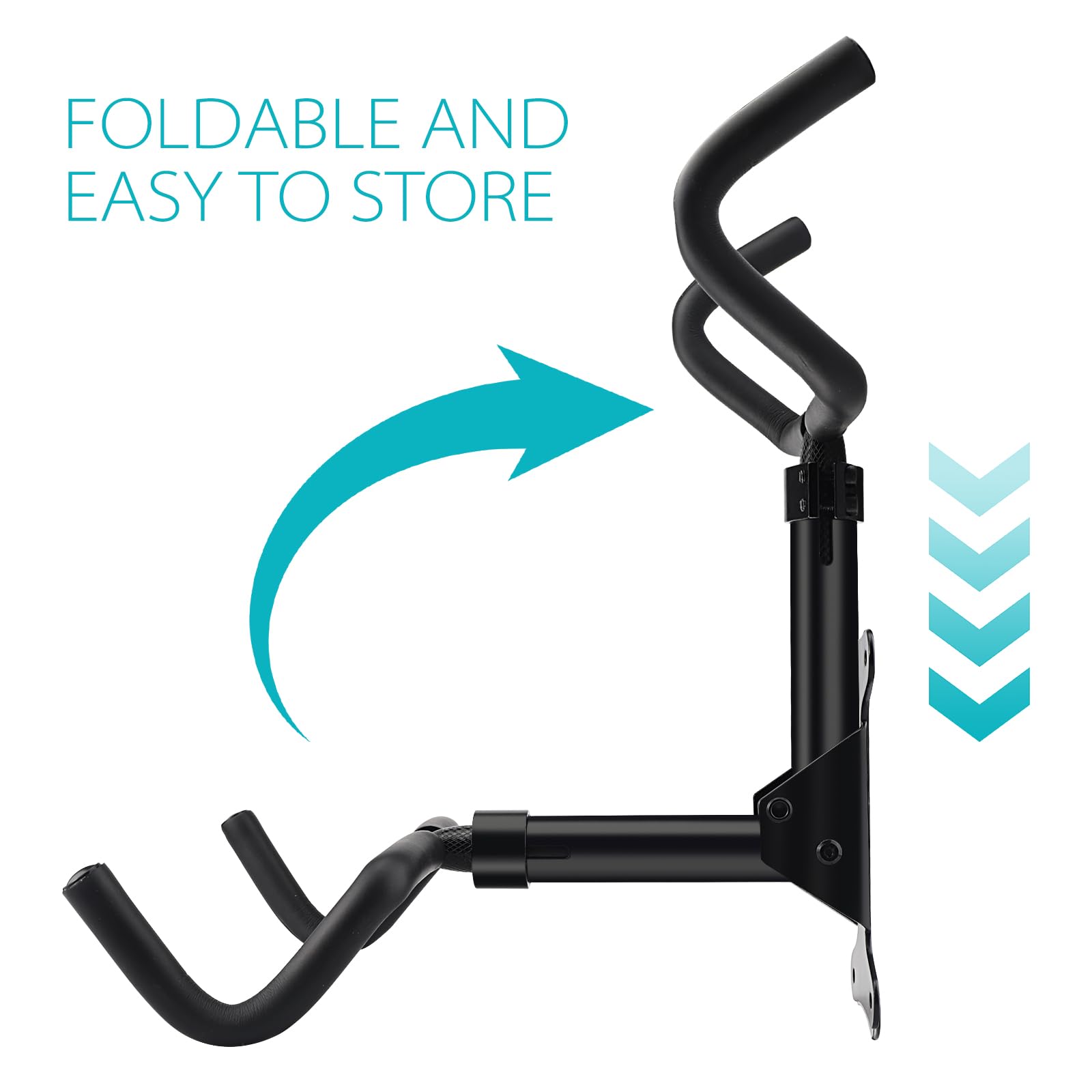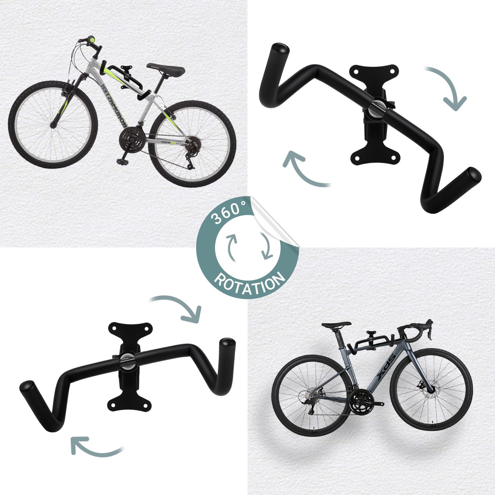 Pinners Support de vélo mural pliable et rembourré, support de vélo mur, support de vélo Adapté à tous types de vélos: Ce support polyvalent offre une rotation à 360° et une extensibilité, s'adaptant à différentes géométries de cadre et largeurs de guidon Design Pliable Gain De Place Support Mural Pour Vélo - Porte Velo Mural - Support Vélo Support Vélo Rotatif 360 Les crochets peuvent pivoter à 360° et s’ajuster en longueur de 27 à 34 cm pour offrir une flexibilité maximale. La structure pliable permet de replier facilement le accroche velo mural garage lorsqu’il n’est pas utilisé, idéal pour le garage, le sous-sol ou la maison. Le porte-vélos à suspension est facile à installer, peut facilement ajuster l'angle de la charnière, a une excellente capacité de charge et peut facilement... Les crochets sont recouverts de protections souples pour éviter d’endommager les durites de frein et les câbles de dérailleur. Son design noir discret s’intègre élégamment dans tous les intérieurs et peut également servir de décoration murale. Que ce soit dans le garage, le sous-sol ou le couloir, il offre un support fiable pour votre vélo. Livré avec des chevilles de haute qualité, ce Support mural pour vélo peut être installé solidement sur béton, brique ou bois.