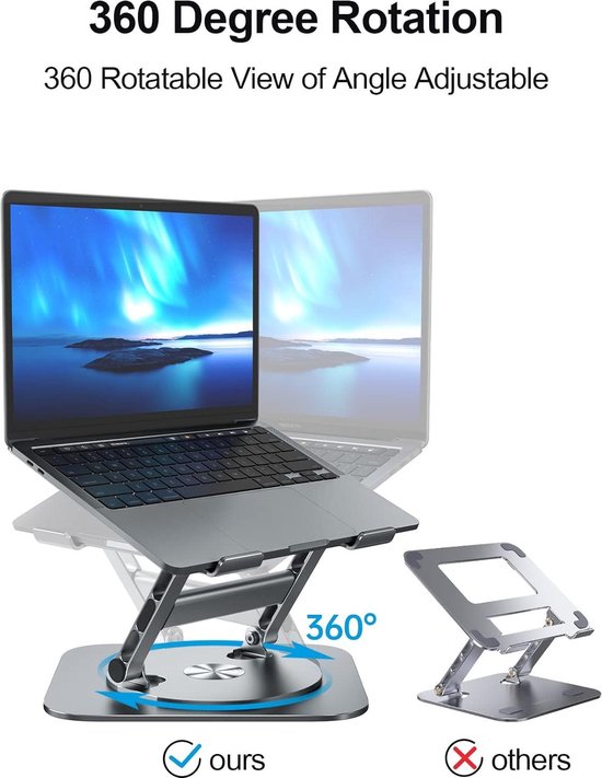 Support Inclinable Support Ordinateur Portable Tounee Réglable Base 360° 10-17" Ergonomique Support Ordinateur Portable Réglable Et Rotatif - Ergonomie Assis-Debout Base Rotative 360 Laptop Stand Support Pc Rotatif 360 Reglable Hauteur Grifema Support Ordinateur Portable GRIFEMA - Réglable En Hauteur, Rotatif 360° - Compatible 11-17,3 Support Grifema Gb 1050 Design « H » et stable : le support d'ordinateur MCHOSE est entièrement fabriqué en alliage d'aluminium épais, ce qui le rend plus stable et supporte jusqu'à 10... Réglable et ergonomique : Ce support d'ordinateur est ergonomique et s'ajuste facilement en hauteur et en angle selon vos besoins. Rotation à 360° : La base à deux axes de ce support de bureau pour ordinateur portable vous permet de faire pivoter facilement votre ordinateur portable à 360° et d'incliner la partie supérieure dans toutes les directions. Idéal pour regarder des films en famille, participer à des réunions et des présentations au bureau, ou travailler à domicile. Des coussinets antidérapants en silicone sous le support et sur le support augmentent la stabilité de votre ordinateur portable et de votre tablette. Elle prévient la surchauffe et les pannes. L'alliage d'aluminium à haute conductivité thermique et dissipation thermique prolonge la durée de vie de votre ordinateur et accélère son fonctionnement. Large compatibilité : Ce support d'ordinateur s'adapte parfaitement à votre MacBook, peut être placé n'importe où et s'intègre parfaitement à votre décoration intérieure. Créez votre installation ergonomique idéale avec un support qui s'adapte à vous. Ajustez sans effort la hauteur, l'angle et la rotation pour profiter d'une posture parfaite et améliorer votre productivité