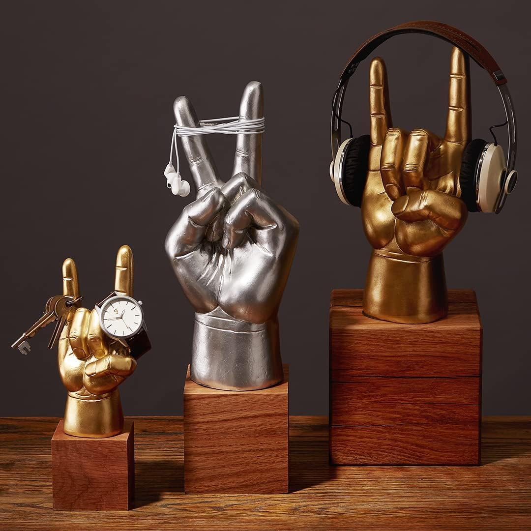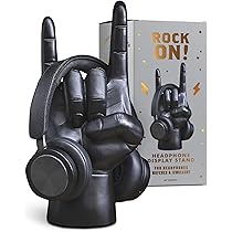 Grâce à ce socle pour casque audio, ne perdez plus jamais vos affaire ! Esthétique, prenant la forme d'une pose de main de rockeur; doré, il met en valeur vos accessoires. Spécialement fabriqué pour éviter l'entremêlement des fils, sentez-vous libre d'y vider vos poches. Détails : Convient aux casques ou aux écouteurs intra-auriculaires Finition or antique Lesté, et avec une base en... Description du produit. support pour casque ou écouteurs; en forme de main de rockstar; joué en noir froid; Matériau : résine coulée; Dimensions : H 28 cm... Casque Filaire Audio Support Pour Casque Audio Support Casque Moto: L'or En Bois Support Casque En Bois Clair Support Casque Audio Main Rock On porte casque - Luckies of London