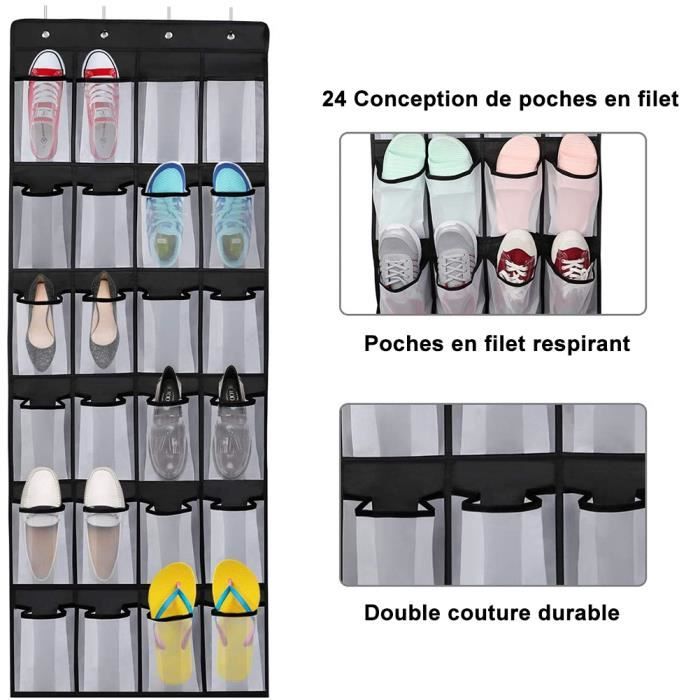 L'organisateur de chaussures au-dessus de la porte dispose de 16 sacs de rangement durables et de 4 crochets métalliques conçus pour une utilisation à long terme. YUMOMO Rangement Chaussures a Suspendre, 24 Poches épargne d'espace Utilisations multiples : l'organisateur de chaussures au-dessus de la porte peut être utilisé pour contenir différents types de chaussures. Rangement Porte LabTEC Organiseur à 28 Poches à Suspendre Sur La Porte, Rangement à Chaussures à Suspendre Gain Place Placard Chaussures Les poches respirantes aident à prévenir l'accumulation de crasse et reste propre. Couleur : noir et blanc. Organisateur suspendu au dessus de la porte 1/3/4/5 grandes poches au dessus de la porte... Plus de poches : rangement pour chaussures de porte avec 16 grandes poches au total, il peut stocker différents types de chaussures et d'objets, tels que des chaussures de tennis, des baskets, des pantoufles, des tongs, des collations, des jouets, des vêtements de bébé, des fournitures de nettoyage, des écharpes, etc Si vous cherchez un espace de rangement supplémentaire, alors c'est exactement ce dont vous avez besoin. AJW-Organisateur suspendu au-dessus de la porte étagère à chaussures de rangement suspendue avec... Maximisez l'utilisation de l'espace pour gagner plus d'espace pour votre maison. Contenu de l'emballage : 1 organiseur à suspendre., 4 crochets. Organiseur facile à nettoyer, lavage à la main et séchage à l'air libre. Cet organisateur de chaussures sur porte est fabriqué en tissus non tissés, respirants et durables. Vous pouvez également utiliser l'organisateur de porte pour contenir des vêtements de bébé, des couches en tissu, etc.
