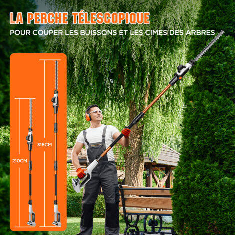 Pack élagueuse sur perche Stihl HTA50 + 2 x AK20 + AL300 | Jardiforêt Comment choisir une élagueuse sur perche Tronçonneuse Perche Batterie 20v Litheli Élagueuse Sur Perche Avec Batterie U20-PS élagueuse Litheli U20-PS 20V 2.0Ah 1 Série U20 2 Tondeuse à Gazon 3 Souffleur de Feuilles 4 Réfrigérateurs Portée étendue jusqu’à 5,3 m : L’elagueuse sur perche electrique peut être réglée de 2,35 à 3,5 m et, grâce à la tronconneuse telescopique, permet de couper facilement des branches jusqu’à 5,3 m de hauteur (basé sur une personne de 1,8 m tenant la scie à hauteur d’épaule) Tronçonneuse sur perche avec batterie 36V - longueur du guide-chaîne 250 mm - poids 3,3 kg... L’élagueuse sur perche atteint une vitesse de coupe de 8,5 m/s et permet jusqu’à 70 coupes dans du bois de 7,6 × 7,6 cm Utilisation sûre et pratique : La tronconneuse a perche est dotée d’un interrupteur à double verrouillage pour un démarrage sécurisé et évite tout démarrage accidentel. Système de batterie polyvalent : L’elagueuse sur perche batterie est livrée avec une batterie Li-Ion 20V 2,0Ah. La poignée ergonomique assure un travail efficace