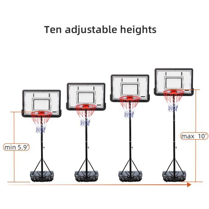 Facile à assembler et assembler vidéo: Notre panier de basket extérieur pour enfants est conçu pour les plus de 36 mois, avec un système réglable sur 5 niveaux de hauteur allant de 1,5 à 2,1 mètres (du sol au bord inférieur du panneau). Panier Basket Enfant Réglable 1.5m à 2.1m Panier De Basket Sur Pied - Hauteur Réglable 1,48m à 2,5m Avec Filet Et Ballonportable Jouet Exterieur Interieur Pour Enfant Adulte 79085759 Panier De Basket Réglable Enfant Parce que l'eau gèle quand elle est en dessous de 0 degrés Celsius, il est facile d'endommager la base. Une tige principale en acier, un filet en nylon 24 / 7, il ne fait aucun doute que ce panier de basket - ball peut bien accompagner votre enfant. Base stable pour le but de basket-ball: Le cercle de basket-ball dispose d'une base épaississue, qui peut être remplie avec 35 kg d'eau ou 55 kg de sable pour en faire un jouet sûr et durable pour vos enfants. Excellent service à la clientèle: notre priorité est de fournir des paniers de basket de haute qualité pour que nos clients puissent en profiter. Panier De Basket Portable Et Réglable En Hauteur Avec Roulettes Et Base De Lestage Noir Blanc Amusement et jeux pour toute la famille et plaisir de passer du temps ensemble Cela le rend parfait pour les loisirs familiaux, permettant de développer et d'éveiller les talents basketballistiques des enfants dès leur plus jeune âge. Transformez votre jardin en terrain d'entraînement de basket-ball pour les enfants Vous vous amuserez avec vos amis, votre famille et développerez le potentiel de votre enfant en basketball. Si vous avez des questions sur ce support de basket - ball, n'hésitez pas à nous contacter, nous vous fournirons un service permanent. Attributs : Ajustements flexibles : Ce panier de basket réglable permet d'innombrables ajustements (1,5m-2m) en fonction de la taille de votre enfant. Le bouton de réglage complet facilite chaque réglage. Vous pouvez également retirer le tube inférieur pour l'utiliser, avec une hauteur du sol au rebord de 91cm à 1,46 m et une hauteur du sol au panneau arrière de 1,30 à 1,85 m. Support... COSTWAY Panier de Basket-Ball sur Pied Hauteur Réglable 176-206cm... vcloo panier de basket exterieur Vidéo de marchand Lieu de rencontre populaire pour les enfants jouant dans le quartier Ce panier de basket est plus adapté aux enfants de moins de 1,4 mètre Nous espérons que vous et vos enfants serez comblés par nos produits et que votre maison sera pleine de chaleur et d'amour
