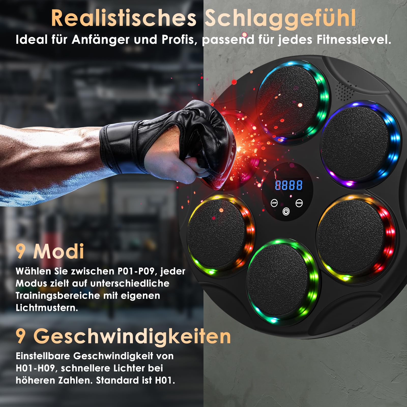 Les stickers magiques puissants collent fermement l'équipement d'entraînement de boxe au mur sans le desserrer. Compact et portable, il peut être monté sur n'importe quel mur. équipement Sportif Interactif Enfants Sur Pied Machine De Boxe Musicale, 2025 Nouvelle LED Boxe Mural Musique Avec Gants De Boxe, Mode Bluetooth Machine De Box Musical Cible De Boxe Machine De Boxe Musicale - Bluetooth Intelligent Avec Affichage LED Et Comptage ... Bluetooth Murale avec Gants 3 Modes 5 Vitesses Réglable et Lumière LED pour... Il est spécialement conçu pour une installation murale. 【Interesting fitness methods】Un écran rétroéclairé sur une cible murale Guide vos exercices de frappe et l'accès à une zone lumineuse peut améliorer votre coordination et votre réactivité. Combinez la musique scintillante et les effets de lumière cool avec le rythme et parfaitement synchronisé avec les mouvements de boxe. 【Large utilisation】Profitez de la commodité d'une connexion sans fil en connectant votre boxeur intelligent mural à vos appareils préférés via Bluetooth. En outre, il protège efficacement vos mains contre les blessures pendant les combats. Le boxeur musical est un appareil de boxe amusant et innovant qui combine cardio, force et exercices mentaux. Installation facile et réglable en hauteur. Rendez vos exercices plus agréables et motivants. EN STOCK : Machine de Boxe Mural Bluetooth Entraîneur Électronique 9 Vitesses Modes Affichage LED Gants Gym Maison, XHWD CY V 487 pas cher. Livraison rapide partout en France 【Installation facile, forte adhérence】Le dispositif de boxe musicale est fixé au mur, économisant de l'espace et ne nécessitant pas de perçage. L'entraînement de boxe peut être fait n'importe quand, n'importe où. Dites adieu aux exercices ennuyeux! Machine de boîte musicale Équipement Tunisia
