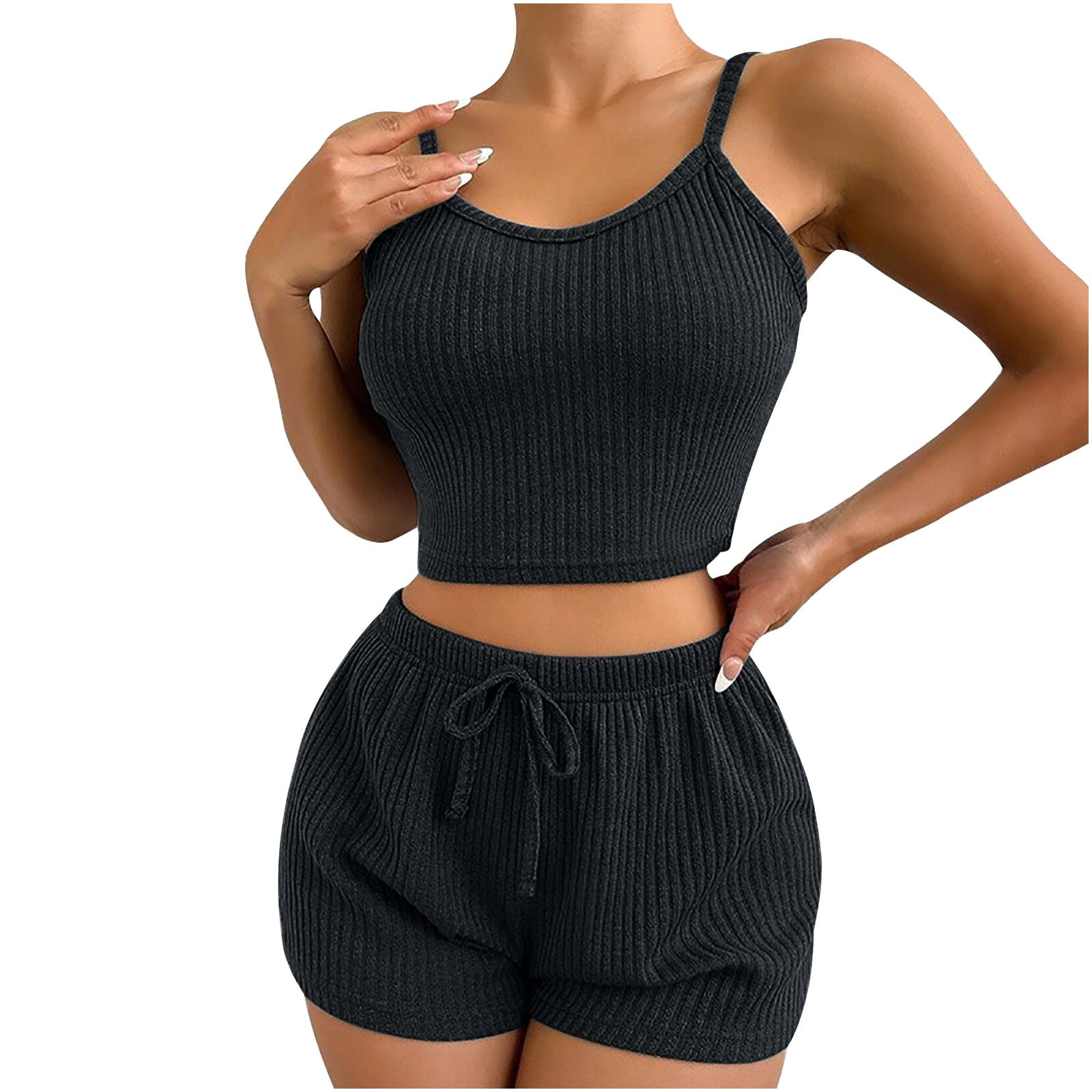 Ensemble Pyjama Débardeur Et Short Côtelé Noir Bordé De Dentelle | Lingerie & Pyjamas... Ensemble débardeur et short en tricot pour femme - Sans manches - Avec short court - Pyjama léger - Court - Pour les loisirs - Ensemble de nuit - Tenue de maison - 2 pièces Pulls Sans Manche Crochet Survêtement Pour Femme Sans Manches Débardeur Short Slim Ensemble Pulls Sans Manches Ensemble pull d'été sans manches, haut en tricot pour femmes, short assorti, 2 pièces, tenues de vacances à la plage acheter à prix bas - livraison gratuite, avis réels avec des photos