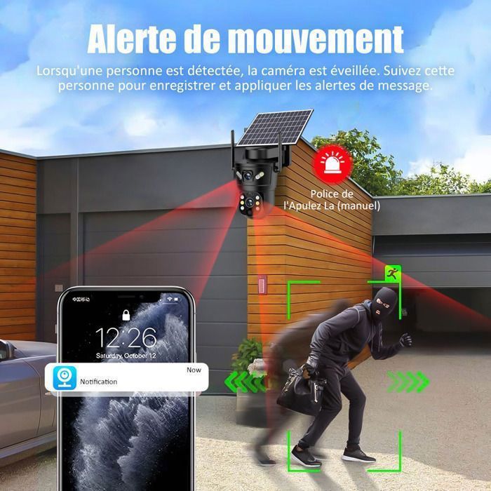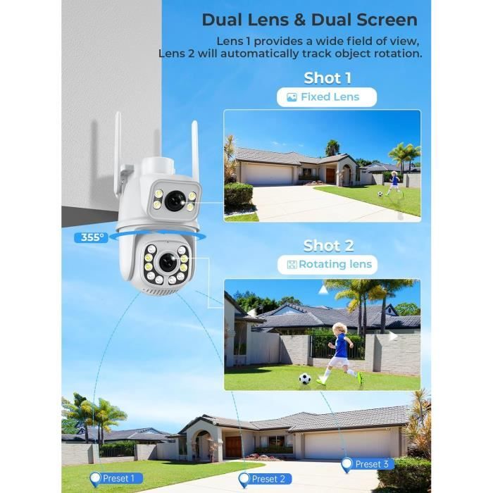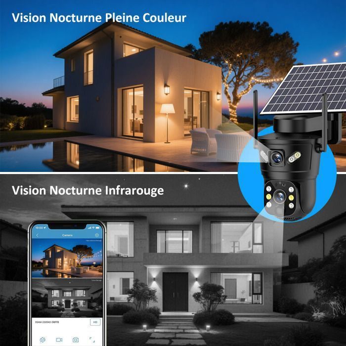【Caméra de surveillance à deux angles】la caméra de sécurité extérieure sans fil BEZOMIZ offre une caméra 2 en 1, équivalente à la combinaison d'une caméra Pt avec une caméra bullet fixe. Camera Surveillance Wifi Exterieure Sans Fil 5ghz Connectez simplement le panneau solaire et vous pourrez l'utiliser 365 jours par an. Caméra Surveillance Extérieure 4K Ctronics 2.5K 4P Caéra Surveillance WiFi Extérieure Avec Double Objectif, PTZ Caéra Exterieur Caméra WiFi 4K Double Objectif 1 8MP HD 2 Protection privée 3 Résistant à l'eau 4 Vision nocturne Grâce à son double objectif, son double capteur PIR et sa double détection, ses objectifs haut et bas fonctionnent indépendamment les uns des autres, ce qui vous permet de surveiller les deux zones simultanément. EN STOCK : Camera Surveillance WiFi Exterieure 360° PTZ,8MP IP Caméra Extérieur avec Double Objectif,Vision Nocturne Couleur,Détection Humaine Intelligent... 【IP66 imperméable à l'eau et sans abonnement, 3 jours de stockage en nuage gratuit】la caméra de surveillance wifi extérieure prend en charge la carte mémoire et la méthode de stockage en nuage, bezomiz fournit trois jours de lentilles en boucle pour le stockage en nuage gratuit, assez pour enregistrer ce qui se passe lorsque l'événement se produit. Rotation parallèle de 355° et verticale de 90° via l'application (O-KAM Pro) pour assurer une couverture complète sans manquer de détails. Vous recherchez une solution performante, autonome et facile à installer ? La caméra de surveillance hybride 4K avec zoom 8X, fonctionnant via le WiFi et alimentée par un panneau solaire, pourrait bien être la réponse à vos besoins 【2,4 / 5gwifi/ WiFi 6& solaire et 355 ° couverture】la caméra de surveillance prend en charge non seulement 2,4 gwifi, mais aussi 5G, équipé de panneaux solaires (câble solaire 3M) et une batterie rechargeable de grande capacité améliorée (10000mah). Avec l'application O-KAM Pro, vous pouvez visualiser deux flux en direct simultanément, tandis que la lentille inférieure peut être ajustée à distance via la commande Pt (355 ° P 90 ° t) pour modifier la zone de surveillance. Le 100 % sans fil garantit qu'il n'y a pas de câbles réseau ou de cordons d'alimentation supplémentaires qui pourraient vous causer des problèmes. 1 Dialogue bidirectionnel 2 Double WIFI 3 Suivi automatique 4 Partager 5 2-IN-1 Lors de la détection, La camera surveillance wifi exterieure sans fil enregistre aussi une vidéo de 10 secondes et si vous voulez, une sirène s'activera automatiquement pour effrayer les intrus potentiels