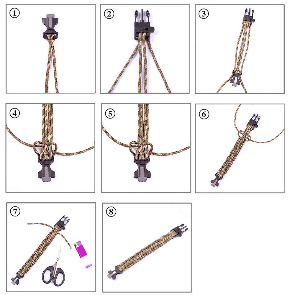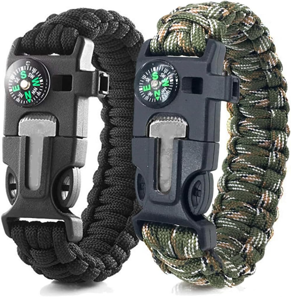 Bracelet Paracorde Bracelet De Survie Paracord 5 En 1, Bracelet Paracord, Flint, Boussole, Sifflet, Survie, Paracord, Bushcraft, Outil Multi - France Accessoire Survivaliste Homme Femme 5-en-1 Bracelet de Survie, Nouveau Kit de Vêtement de Bracelet de Sport D'urgence à 7 Noyaux Paracord Compas étanche, Sifflet de Secours, Multi-outils pour Accessoires de Loisirs en Plein Air Largement adaptable : Le bracelets de survie en paracorde convient à la pêche, à la randonnée, à la chasse, au camping et à d'autres activités de plein air, et peut répondre aux besoins de divers scénarios, tels que le tirage de corde, le piégeage ou les premiers secours Compass bracelet avec un design léger, il n'ajoutera pas de fardeau lorsque vous le portez, que vous le portiez au poignet ou que vous l'accrochiez à votre sac à dos, c'est très pratique et confortable. Spécifications : Nom : Bracelet paracorde survie Taille: 26 x 3 cm Couleur : Noir + Vert Armée + Vert Armée Camouflage + Orange et Noir Matière : Plastique + Cordon en coton Liste d'emballage : 4x Bracelet de survie multifonctionnel Outil de survie 5 en 1 : Chaque bracelet intègre des outils de survie afin d'offrir une protection complète aux aventuriers en plein air. CARACTÉRISTIQUES : En cas d'urgence, les utilisateurs peuvent rapidement retirer le bracelet et utiliser ses fonctionnalités intégrées. Remarque : la longueur n'est pas réglable. Équipement compact : Condense de nombreuses fonctions de survie dans un petit bracelet paracorde homme, ce qui permet d'économiser de l'espace et constitue l'équipement idéal pour les bagages à main. Largement adaptable : Le bracelets de survie en paracorde convient à la pêche, à la randonnée, à la chasse, au camping et à d'autres activités de plein air, et peut répondre aux besoins de divers scénarios, tels que le tirage de corde, le piégeage ou les premiers secours. Kit de survie 5 en 1 (par bracelet) : contient : allume-feu (tige ferro grattoir), boussole, sifflet de sauvetage bruyant, paracorde de 290 cm et coupe-corde