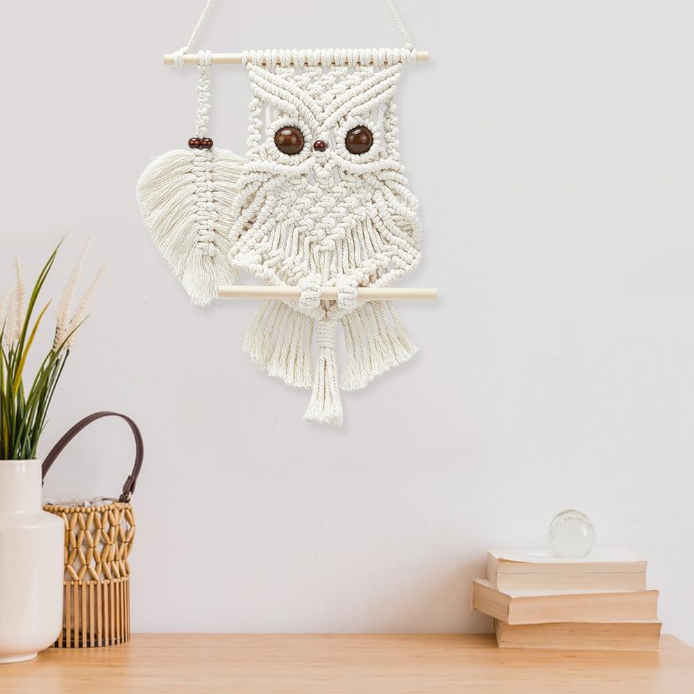 Kit DIY Bébé hibou en macramé , fait main dans le Sud-ouest Attrape-Rêve Dream Catcher Hibou Plumes Décoration Maison Murale... Kit Macramé Hibou Décoration Suspendue Hibou – Les Récréations De Mayleen Cadeau Fait Main Hobby facile à démarrer Design unique de hiboux : c'est une décoration murale hibou glamour, un ornement détaillé qui illuminerait votre pièce, apporte des vibes vintage et bohème, ainsi qu'un symbole d'intelligence. Peinture Par Numéros Adultes Débutants Hibou Diy Peinture À L'Huile... Le paquet comprend : il y a un anneau en fer de 20 cm, une tige en bois de 20 cm, une corde en coton grise de 90 m, 2 anneaux en bois de 4 cm, une perle de 20 × 30 mm, 2 yeux en plastique, et d'autres outils emballés dans une boîte pour créer ce décor en macramé. Tutoriels vidéo inclus : nos kits de chouettes en macramé sont livrés avec des instructions en papier avec un code QR que vous pouvez scanner pour regarder les tutoriels vidéo, donc même si vous êtes un débutant inexpérimenté avec suffisamment de patience, vous ferez le travail en toute sécurité ! Une activité relaxante : si vous êtes stressé et anxieux, le macramé est un excellent moyen de vous détendre, vous permettant de rester concentré et d'oublier vos soucis pendant un certain temps. Cadeau créatif fait à la main : vous pouvez donner ce kit directement à vos amis qui aiment le macramé, ou vous pouvez l'offrir une fois terminé.