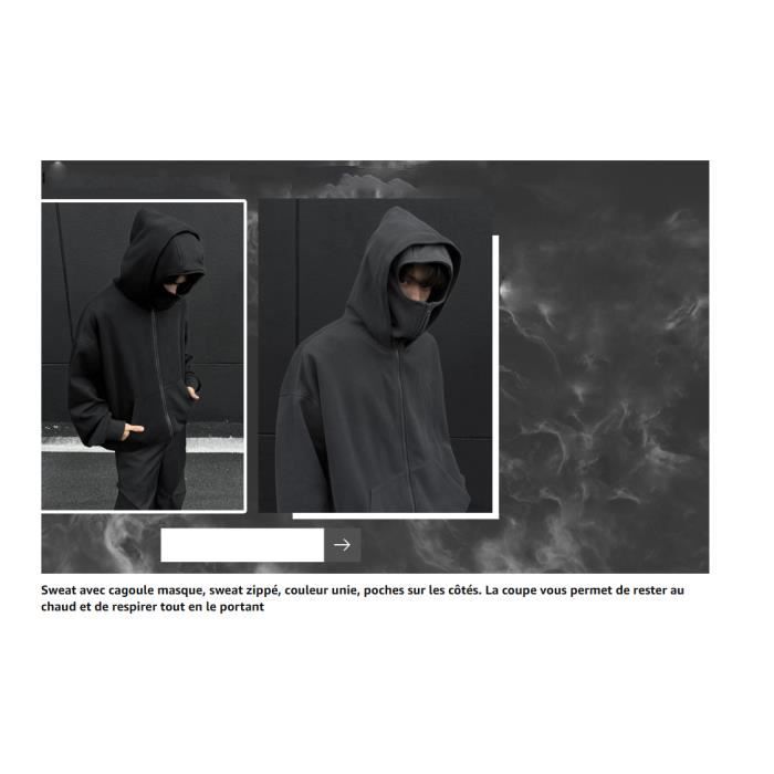 Des coutures au tissu, tout est soigneusement pensé pour garantir que les vêtements résistent à des lavages répétés et à un port quotidien, conservent leur forme et leur texture pendant longtemps, ce qui en fait le vêtement le plus fiable de votre garde-robe. Remarque : veuillez vérifier attentivement le tableau des tailles avant de passer votre commande. Combinaison Sport 2 Pièces Chaude Veste Moto Hiver Homme Sweat Capuche Homme Avec Cagoule - Veste Polaire Moto Sport Hiver Vêtement Outdoor Masque Coupe-vent Survêtement Cagoule Homme Découvrez toute notre gamme de sur : Sweat À Capuche Motif/style Bouclier Homme Vert Gant à partir de 90€99. Exclusivité web Si vous êtes grand, nous vous recommandons de choisir une taille plus grande que votre taille habituelle. Vous cherchez d'autres options de style ? Des sweats à capuche basiques aux designers, nous proposons une variété de points forts et de silhouettes pour répondre à vos besoins, que vous recherchiez quelque chose pour la détente à la maison ou la mode urbaine. Fabriqué à partir de tissus de haute qualité, ce survêtement pour homme se caractérise par un toucher doux et confortable et une coupe structurée et cintrée, ce qui vous permet de concilier facilement mode et confort. Costume d'Halloween, survêtement 2 pièces, costume baggy, costume d'Halloween pour homme, costume d'Halloween, costume de jogging, pantalon de jogging baggy, pantalon de jogging pour homme, pantalon de jogging baggy Mode : que vous vous détendiez à la maison, que vous sortiez le week-end, que vous vous entraîniez à la salle de sport ou que vous vous déplaciez au travail, c'est votre arme à la mode. Le confort est notre promesse fondamentale envers vous. Polyvalent : nous proposons une large gamme de couleurs à la mode, des teintes classiques aux teintes tendance qui s'adaptent à vos différentes humeurs et besoins de style. Sécher à plat pour prolonger la durée de vie. Matériau : cette matière en tissu polyester de haute qualité combine un toucher doux avec une excellente respirabilité. Grâce à ses propriétés légères et... Fiable : nous nous concentrons sur la fabrication de vêtements de tous les jours durables. Ce survêtement convient à tout le monde et est la toile parfaite pour exprimer votre style personnel. Instructions de lavage : lavage à la main à moins de 30 °C, ne pas utiliser d'eau de Javel, ne pas laver en machine ou sécher au sèche-linge pour obtenir le meilleur ajustement. Balaclava Sweat à capuche zippé pour homme