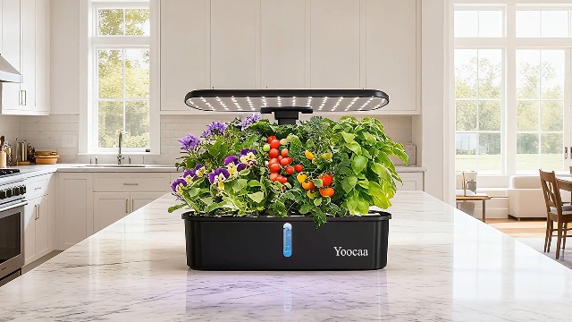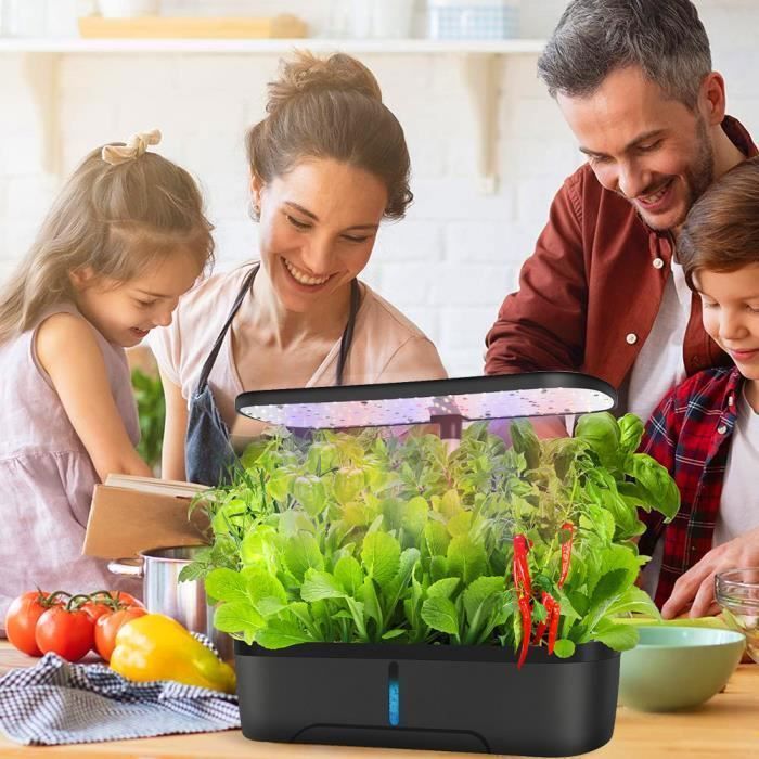 Jardin D'herbes Lumière Led Système De Culture Hydroponique, Kit De Jardin D'intérieur Avec Lampe De Croissance LED, Pot De Jardin Aromatique Intérieur Réglable VEVOR Système DWC, seau de culture profonde, kit de culture hydroponique avec pompe, pierre à iDOO Systèe de Culture Hydroponique, Wi-FI Jardin Intelligent, Potager... Panneau lumineux de 24 W et 2 modes de croissance : ce pot de fleurs d'intérieur dispose d'une lampe LED à spectre complet efficace de 24 W qui imite l'effet de la lumière naturelle du soleil. Installation sans effort et croissance réglable : installation facile : il suffit d'étendre les tiges, de fixer la planche et de l'insérer - Vous pouvez commencer à planter en seulement deux minutes. La plage de hauteur réglable de 55 mm à 315 mm garantit une couverture optimale de la lumière à chaque stade de croissance, du semis à la plante adulte, ce qui le rend idéal pour différentes plantes vertes et herbes. Grâce à l'absorption des racines améliorée de 50 %, il favorise une croissance plus rapide, plus saine et un développement plus fort des racines. Contrôle intelligent et facile à utiliser : ce kit de culture hydroponique dispose d'un panneau de commande simple à trois boutons avec des modes spéciaux pour les légumes et les fleurs/fruits. L'indicateur de niveau d'eau fourni avec des marques claires permet de surveiller facilement le niveau d'eau et un arrosage suffisant. Cadeaux de jardin parfaits pour les débutants : ce jardin d'herbes aromatiques d'intérieur avec lumière de croissance contient 12 pots de fleurs, un panier à plantes, des éponges pour plantes ainsi que des engrais A et B – tout ce dont vous avez besoin pour la culture (graines non incluses). 12 módulos, compacto y potente] Este sistema de jardinería interior cuenta con 12 módulos de plantación y un tanque de agua de 4 litros con bomba integrada (15 min encendido, 1 h 45 min apagado, ciclo de repetición), optimizando el suministro de nutrientes a las raíces. Design spacieux mais compact