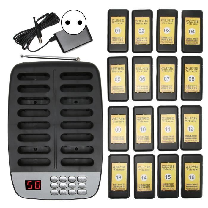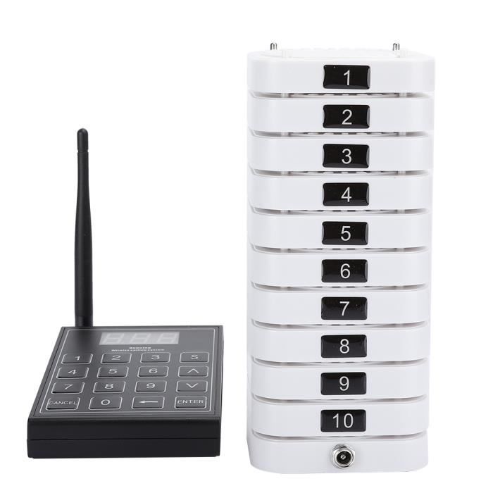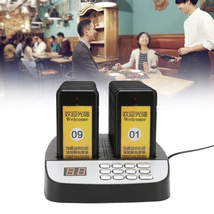 Mophorn Système de téléavertisseur pour restaurant, signal de file d'attente sans fil longue... Configuration flexible: ces téléspectateurs de file d'attente du client invité peuvent être configurés de manière flexible, permettant à une clés de s'associer à plusieurs récepteurs ou à plusieurs boutons pour s'associer à un récepteur, ce qui les rend idéales pour les maisons, les écoles, les bureaux, etc. Récepteur d'étanchéité durable: Avec une fréquence de travail de 433,92 MHz, une cote d'étanchéité IPX4, un décodage de code d'apprentissage et un long temps de veille, le récepteur assure des performances fiables même dans des environnements difficiles. Appareil Appel Sans Fil Vibration Lumière Son URB Système De Téléavertisseur SU-66 1 à 16 Système D'attente De Bipeur Téléphone Plusieurs modes rapides: le téléavertisseur en attente du restaurant propose 3 options d'alerte, un flash léger avec des vibrations, un flash léger avec buzzer et un flash léger avec des vibrations avec un buzzer, offrant des notifications polyvalentes et à faible puissance adaptées à vos besoins. Champ d'application : système d'appel sans fil pour les restaurants de restauration rapide, les aires de restauration, les pizzerias, les églises et les magasins automobiles ou d'autres endroits où de nombreux clients attendent d'être servis Voir plus de détails Vous avez des questions à propos des informations du produit en français Design à la mode et pratique à utiliser. Système Téléavertisseur Restaurant sans VEVOR, Fil Longue Portée 400m,Bipeurs Restaurant pour File d'Attente avec Vibration et Clignotant,20 Buzzers | Leroy Merlin