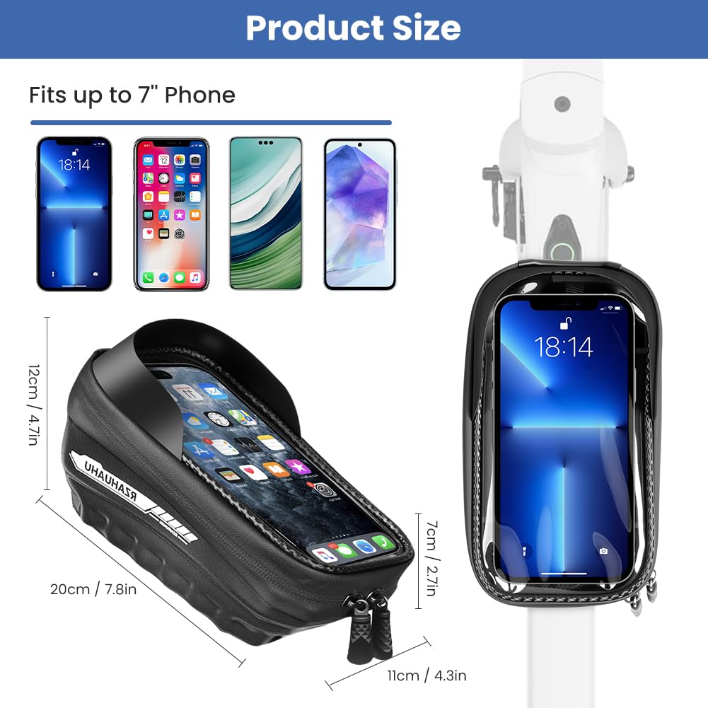 Vous n'aurez plus à craindre les rayures lors de vos déplacements accidentés. flintronic Support de téléphone pour vélo étanche - Rotation à 360° - Sacoche de guidon de vélo avec écran tactile - Pour iPhone et Samsung jusqu'à 6,4... 【Design ergonomique】Cette sacoche de cadre adopte un centre de gravité bas et une forme profilée, réduisant les frottements au niveau des jambes et rendant les longs trajets plus confortables. - Les mesures étant prises à la main, une marge d'erreur de 2 à 3 cm peut être constatée. Housse Smartphone Vélo VTT Sacoche De Guidon Velo Sacs Montage Téléphone Vélo Sac Écran Tactile Étanche Cas Support Support Telephone Velo La visière à l'avant du sac évite les reflets, vous permettant ainsi de voir clairement l'écran même sous une forte luminosité grande ouverture pour un accès facile. Son film TPU transparent vous permet de toucher directement l'écran. Ses multiples compartiments permettent de ranger facilement outils, portefeuilles, etc. et sa grande ouverture est pratique pour emporter vos affaires - Grande adaptabilité : compatible avec les téléphones portables de moins de 7 pouces, film TPU transparent pour une utilisation tactile directe. Son design tridimensionnel et élégant résiste efficacement à la pression et à la déformation. Double Fermeture à Glissière Étanche & Garantie de 18 Mois: Ce Sacoche cadre de velo est conçu avec des doubles fermetures à glissière, ce qui est plus étanche... - Tissu imperméable : les éclaboussures de pluie s'écoulent rapidement grâce à la fermeture éclair anti-pénétration, pour une conduite sans souci sous une pluie fine. 【Imperméable et bande réfléchissante】Notre sacoche pour téléphone portable est fabriquée en tissu imperméable et équipée d'une fermeture éclair anti-perforation. Sacoche de guidon pour vélo Sac de cadre avant pour vélo de route Support de téléphone tactile 6