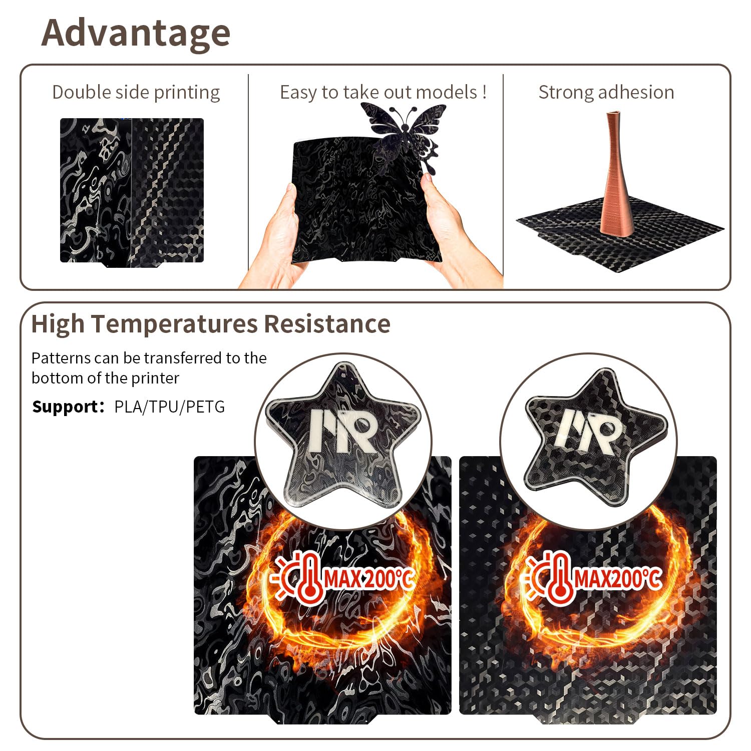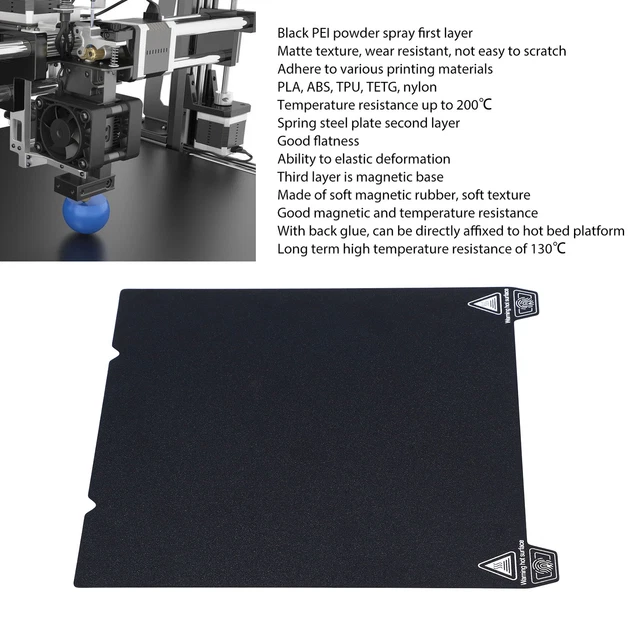 Offrez une forte adhérence et une adhésion pour les résultats d' réussis Plateau Ender 7 Qidi X Plus Fdit Tôle D'acier PEI Tôle D'Acier à Ressort Plaque De Poudre Noire Plateforme Adhésive Forte Impression 1., Lit d' à double côté: avec des plaques PEO -Peo à deux faces, une page offre un certificat d'imprimante lisse, un film PEO amélioré. Film PEI: Cette plate-forme de feuille d'imprimante 3D est équipée lame ambrée et offre des surfaces douces pour une adhérence optimale des matériaux de pression, en particulier le jeu et les abdos. Éliminez facilement la feuille de protection transparente pour une utilisation, en payant des températures jusqu'à 200 ° C 3 0,25 mm / 0,01 pouces Épaisseur de feuille de caoutchouc magnétique: env. 1,2 mm / 0,05 pouces Épaisseur de texture de PEO: env. Officiel Pei Plateforme Ender 3 Plaque Pei Sheet 235X235 Pei Bed De... Laissez la planche de construction refroidir avant de retirer le modèle pour éviter d'endommager le revêtement., 5., Compatibilité exceptionnelle: la plaque PEO -Peo -Build convient à Ender 7 et à l'imprimante Qidi X plus 3D pour assurer des performances transparentes et des résultats d' optimaux. L'autre côté est une surface de PEI givrée, qui offre une sensation tactile unique à l'apparence des autocollants Matt pour assurer une responsabilité plus importante et empêcher la procédure pendant la pression., 2., Vous pouvez utiliser les deux côtés., 3 ., ., Compatible avec les longs filaments: l'apparence de la plaque PEO -Build permet l' de PLA, TPU et PETG. 0,15 mm / 0,01 pouces Épaisseur totale: env. MSA Plateau D' Pei Avec Plateforme En Acier Flexible Pour Imprimante 3D L'adhésif est nécessaire pour imprimer d'autres matériaux. Épaisseur de revêtement PEI de 0,25 mm et épaisseur de feuille de caoutchouc magnétique de 1,2 mm