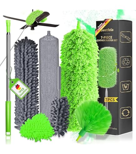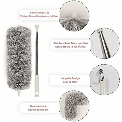 Contrairement à d'autres plumeaux qui laissent des taches sales et visibles, nous avons un capuchon en silicone souple pour augmenter la protection, pour ne pas rayer les plafonds et les murs, et vous n'avez pas à vous soucier de rayer les fenêtres et le canapé. Balai Poussière Angle Pliable Ventilateur Coin Haut 6 Pièces Plumeau Télescopique, Lavable, Plumeau Avec Tige Télescopique Plumeau Longue Portée Ni une échelle ni un escabeau ne sont nécessaires pour le nettoyage. Super capacité d'aspiration : fabriqué en microfibre de haute qualité acier inoxydable de haute qualité, il est durable et ne rouille pas. Le plumeau télescopique absorbe fermement les particules de saleté, le pollen, la poussière, les poils humains et animaux et les toiles d'araignée.Conception humanisée : de nombreux plumeaux lavables finissent par laisser de la saleté et des... Poignée antidérapante pour une prise en main confortable et stable. ✔ [Microfibre ultra dense et concept amélioré] : le plumeau à main pour ventilateur de plafond est fabriqué en microfibre de haute qualité. Plumeau télescopique 254 cm, tête de loup télescopique, microfibre, pliable, manche flexible en acier inoxydable, lavable, idéal. 13,99 € · Plumeau avec manche... Avec un trou de poignée, vous pouvez l'accrocher au mur ou à la porte, ou à l'envers et au poteau. Les plafonds, les toiles d'araignées, les murs, les ventilateurs de plafond et les lampes hautes faciles à nettoyer rendent le nettoyage plus sûr. Avec une forte capacité d'adsorption électrostatique, il peut rapidement attraper et absorber la poussière fine et les cheveux des automobiles, des ventilateurs de plafond et des cadres photo, vous faisant gagner la moitié du temps de dépoussiérage. Plumeau en microfibre - brosse à poussière manche long extensible ✔[Réutilisable] : l'accessoire de nettoyage de la poussière est amovible et lavable. ✔ [Tête pliable avec capuchon en silicone souple] : la tête en microfibre est pliable et flexible.