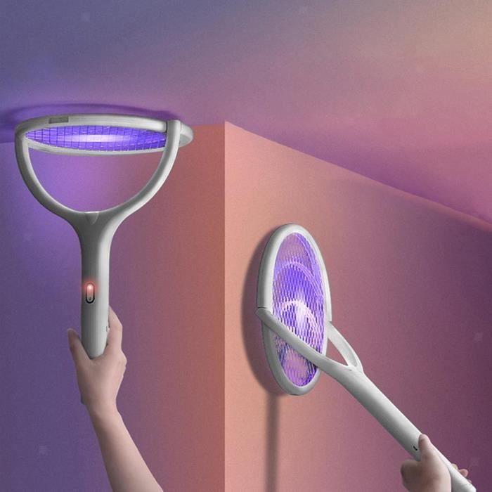 Anti Mouche QUMOX Raquette électrique à Tête Rotative, Tapette à Insectes Prise Anti Moustique Notre raquette électrique d'insectes est conçue pour une élimination efficace des insectes grâce à sa tête rotative innovante et à son manche télescopique extensible. Avec une puissance de décharge électrique de 3500V, elle permet de capturer rapidement divers insectes volants tels que les mouches, les moustiques et les guêpes Tapette à mouches électrique à tête rotative - Rechargeable - 3500 V Utilisations multiples : Cette tapette à mouches électrique polyvalente peut être utilisée de différentes manières : à la main pour un élimination rapide, posée pour attirer les insectes, ou fixée au mur pour un rangement pratique et comme piège à insectes fixe chez vous. Tapette à mouche électrique 5 en 1, tête rotative, Rechargeable... Utilisations multiples : Cette tapette à mouches électrique polyvalente peut être utilisée de différentes manières : à la main pour un élimination rapide, posée pour attirer les insectes, ou fixée au mur pour un rangement pratique et comme piège à insectes fixe chez vous. Élimination efficace des insectes - Éliminez les insectes volants rapidement et efficacement grâce à une puissante décharge électrique de 3500 V. La conception en treillis métallique à 3 couches assure la sécurité et évite les chocs accidentels. Tête rotative brevetée - Notre tapette à mouches électrique est dotée d'une tête rotative unique qui permet d'attraper facilement les insectes sous tous les angles, y compris sur les murs et autres surfaces.