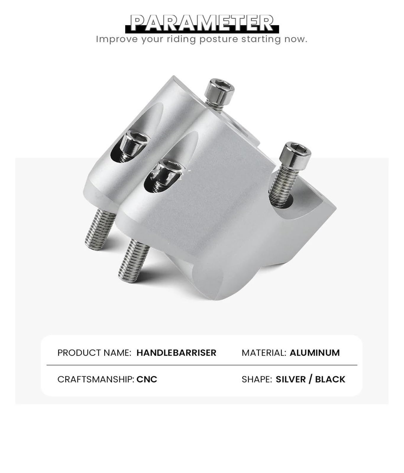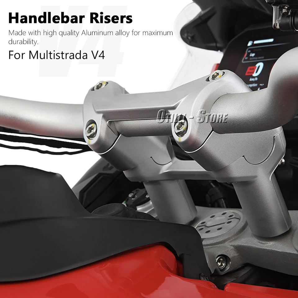 Pièces détachées Ducati Multistrada V4 - Dafy Moto Fonction : Ce kit de montage universel pour guidon de moto vous permet d'installer et de fixer les protège-mains, de garantir une position de conduite sûre et de réduire la fatigue. Réglage Position Conduite TAOMYDS Poignée Barre Pince Surélevée Pour Ducati Pour MULTISTRADA V4 Pour Multistrada V4 Installation De L'élévateur Guidon De Moto Guidon Riser Pince(Silver Réduction Fatigue Trajet MontagePour Ducati Pour Multistrada Pour V4., La bonne hauteur de rehausseur de guidon peut grandement améliorer le confort de conduite et réduire efficacement la fatigue lors de longs trajets. Performance : pince de montage pour moto. Améliore la maniabilité de la moto et augmente la sensibilité de la direction. Durable Support DUCATI pour MULTISTRADA V4 2022-2025 Esprit DUCATI la référence... Il permet au conducteur d'avoir une meilleure posture et un meilleur contrôle pendant la conduite. Pour Ducati Pour Multistrada Pour V4 Pour MULTISTRADA Pour V4., Matériau : Fabriqué à partir de matériaux spéciaux, durable et robuste. Son design compact met en valeur l'esthétique de la moto. Le soulèvement vers le haut permet au cycliste d'avoir une position de conduite plus confortable et réduit efficacement la fatigue lors des longs trajets. Vous pouvez régler et relever le guidon de la moto. CaractéristiquesL'usinage CNC est réalisé en alliage d'aluminium à haute résistance, doté d'une surface anodisée.
