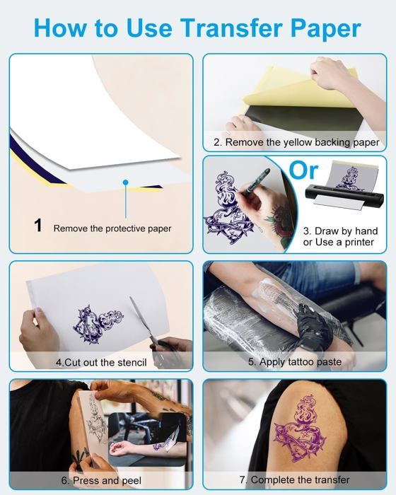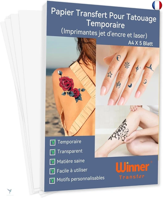 Transfert Cosplay événement A4 PAPIER TATOUAGE TEMPORAIRE 10 Papiers Feuilles Transfert Pour Pochoir Copieur Tatouage Tattoo Papier Transfert Pour Tatouage Studio Tatouage Qualité Papier Transfert Pochoir Spirit Repro FX Classic Thermal - 25 Feuilles Pour Tatouage Professionnel Carta Ectografica Tattoo LOT DE 20 feuilles de papier de transfert de tatouage A4 - Papier de... Plus besoin de procédures compliquées ! Il suffit d'appliquer le papier sur la peau, de presser légèrement et de retirer délicatement. Nos transferts résistent parfaitement à l'humidité, à la transpiration et aux frottements légers. Parfait pour un usage intensif en studio ou à domicile. Que ce soit pour une fête, un shooting photo ou un essai temporaire, vos motifs resteront intacts sans altération pendant toute la durée d'utilisation. Son épaisseur optimale le protège des plis tout en restant flexible à l'usage. Que vous soyez tatoueur professionnel, amateur de cosplay, organisateur d'événements ou simple passionné, ce papier transfert répondra à tous vos besoins. Ces papiers de transfert pour tatouages sont fabriqués avec le matériau, les fournitures de papier transfert permettent aux artistes professionnels d'économiser du temps et de l'argent