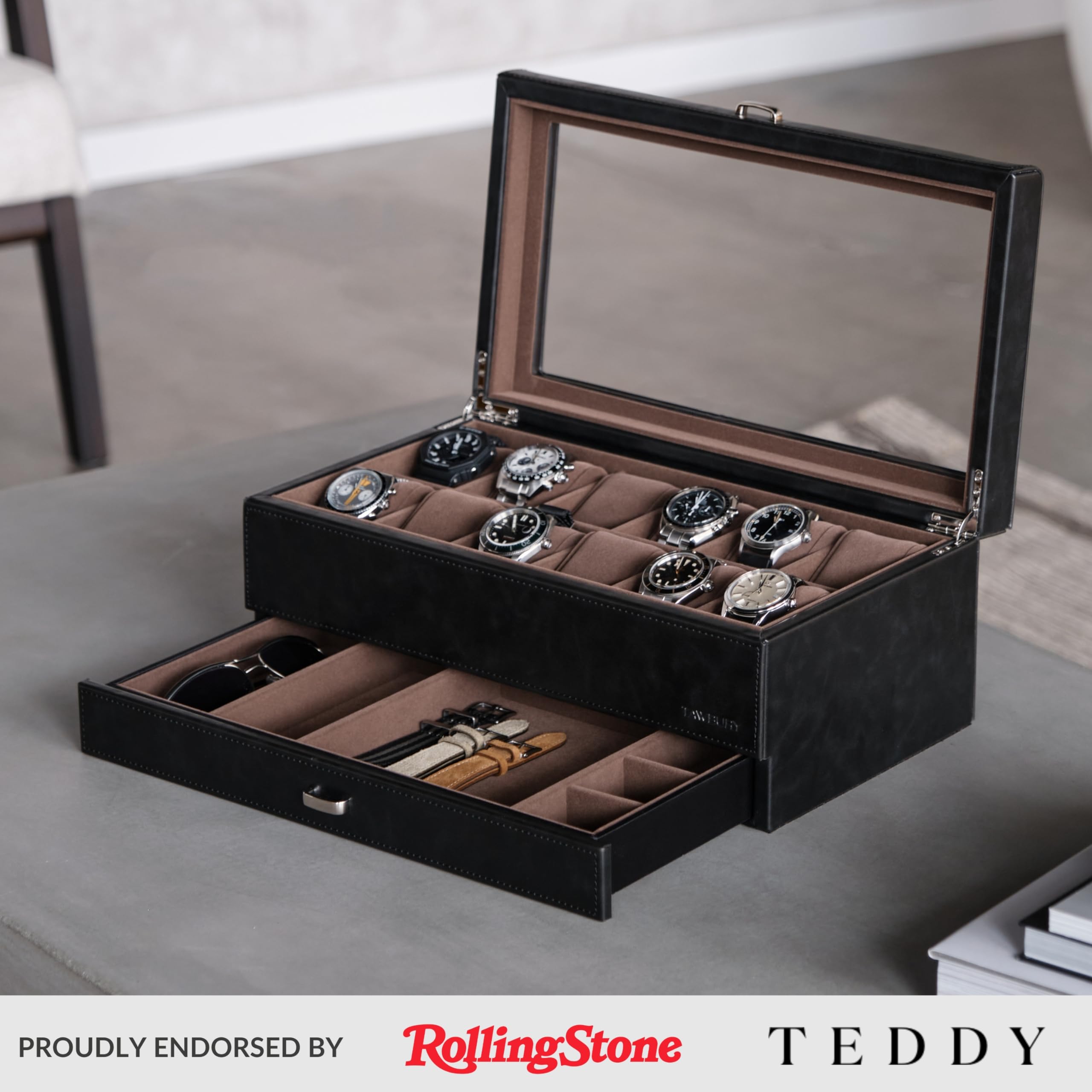 Duvernet Boîte à Montres cuir Noir pour montres et accessoires Robuste et conçue pour durer – Grâce à son savoir-faire exceptionnel et à sa durabilité, la boîte à montres de qualité héritage peut être le récipient dans lequel stocker votre collection chérie pour les années à venir. Coffret à Tiroir TAWBURY 6 Boîtes à Montres Et Bijoux Pour Homme – Présentoir De Montres En Cuir Végétalien En Destockage Et Reconditionné Chez Rangement Montres Cuir Synthétique Noir Un intérieur doublé de velours pelucheux garantit que vos montres restent en parfait état tout en étant rangées dans leur boîte à montres pour homme. Présentez... Boîte à montres Tawbury 'Bayswater' 24 compartiments avec tiroir Le coffret à montres Bayswater pour homme a été fabriqué à la main avec le plus grand soin pour...