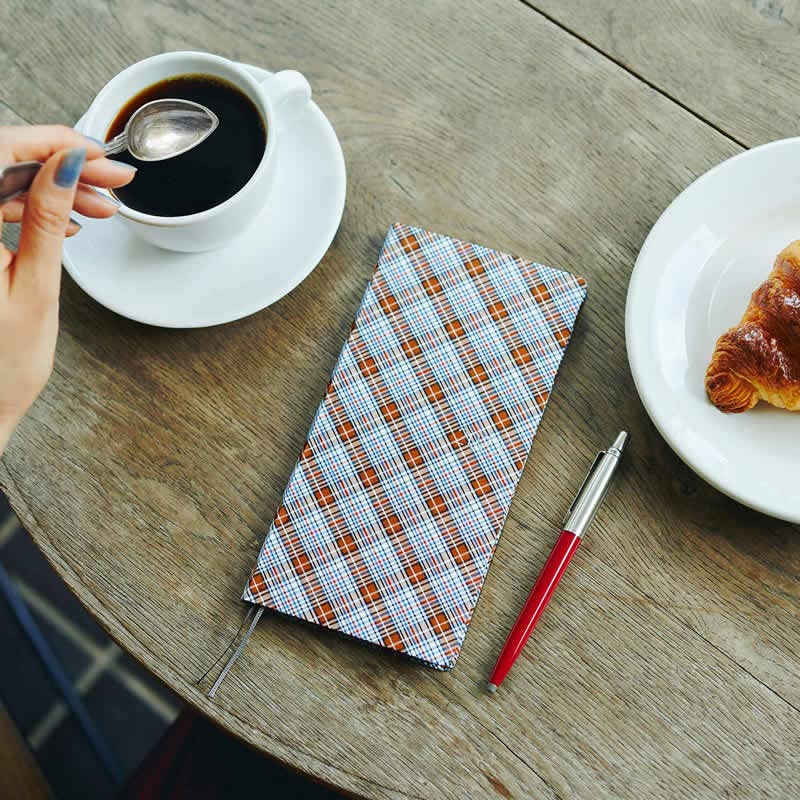 Planificateur hebdomadaire compact, fin et vertical : le carnet de semaines Hoboinchi est facile à retourner, tient confortablement dans votre main et se glisse sans effort dans votre poche ou votre sac. Une couverture de planificateur en tissu de chemise : ce planificateur hebdomadaire est fabriqué à partir de tissu doux. Fabriqué avec du papier Tomoe River et reliure cousue. Cependant, selon le type et la quantité d'encre ou de stylo utilisé, ainsi que les conditions environnementales, certaines encres peuvent traverser ou mettre plus de temps à sécher. Comment paraître plus grande et plus mince La couverture rigide légère est douce et flexible. Le papier Tomoe River conçu pour les planificateurs est connu pour sa finesse et sa surface d'écriture lisse. Lorsque vous commandez ce Hobonichi Techo Weeks, vous recevrez une pochette d'angle transparente et adhésive que vous pourrez coller où vous le souhaitez. Le livre utilise du papier Tomoe River fin et léger mais résistant *La taille réelle peut varier légèrement. Vous remarquerez peut-être des marques de presse, un léger blanchiment ou une finition brillante sur les coins des couvertures avant et arrière. Le motif à carreaux dans les tons gris fumé et marron donne une impression sophistiquée, parfaite pour les scènes d'affaires et les scènes privées. Planificateur Hebdomadaire 2026 HOBONICHI TECHO 2026 | WEEKS | Tolight: A Bright Year | ŪMEI Agenda Début Janvier La nouvelle collection 2026 vient tout juste d’être dévoilée, vous pouvez la consulter sur le site officiel des Hobonichi Techo ! Je pense que je vais craquer pour le modèle « moutarde » ci-dessus, car il contient encore plus de place pour stocker différentes choses et qu’il est beaucoup trop classe (il existe en... Dimensions : 188 x 94 x 11 mm (H x l x P) : 18,8 x 9,4 cm (les spécifications peuvent varier légèrement) | Poids : environ 133 g