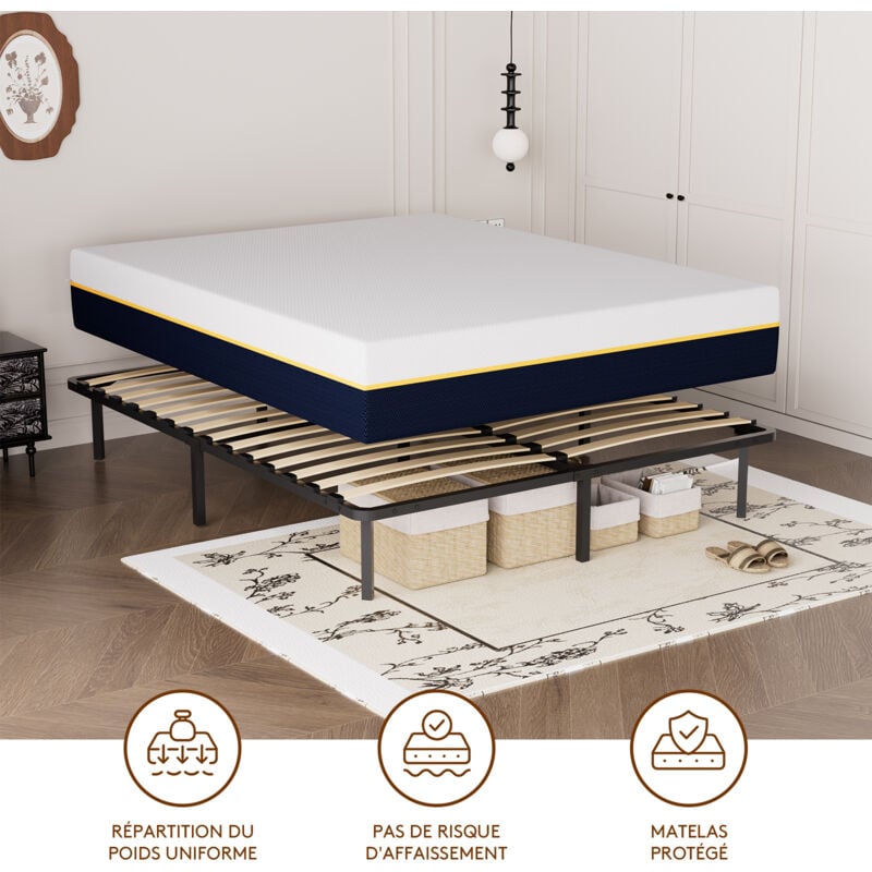 Sommier 20 lattes - 140x200 cm - Le Roi du Matelas Avant le montage, consultez le manuel d'instructions et scannez le code QR pour obtenir un guide vidéo d'installation. Cadre Lit 140x200 TEENO Sommier 140x190, Sommier Tapissier Avec 9 Pieds, Lit 140 X 190 Avec Sommier, Tapissier Déhoussable Avec Housse Lavable, Montage Rapide Et Facile (Blanc Lit Sommier Montage Facile Design Minimaliste Chaque cadre de lit est soigneusement conçu pour offrir un soutien optimal et un confort parfait. Cadre à lattes 160 x 200 cm queen size Noir - Avec pieds - MONTIANO de... Cadre De Lit, 140 X 190 Cm, Sommier Relevable, Avec Rangement, Tête. SOLDES. VASAGLE. Cadre De Lit, 140 X 190 Cm, Sommier Releva.. 179,98 € HT159,98 € HT. 1... MONTAGE RAPIDE ET ENTRETIEN FACILE:Pour votre confort, chaque cadre de lit est livré avec des outils. Le montage peut être effectué rapidement en 20 minutes. ASSURANCE SANS SOUCI : Garantie de 2 ans contre tout défaut de fabrication ou de matériaux, pour une tranquillité d'esprit totale. En choisissant des matériaux écologiques, TEENO se soucie non seulement de la qualité du sommeil de ses utilisateurs, mais aussi du développement durable. Si vous rencontrez des difficultés, veuillez contacter le service clientèle. TEENO CADRE DE LIT:L'inspiration du design de TEENO provient du désir des jeunes d'indépendance et d'individualité.