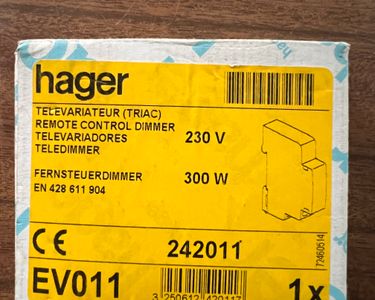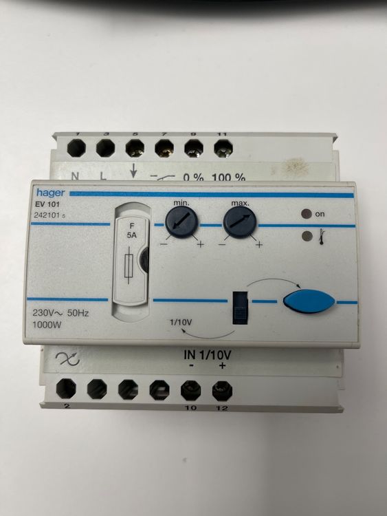 Contrôle à distance du variateur par bouton poussoir (également allumé : retraite actuels jusqu à 5 mA). Une commutation de sortie d'affichage de l'état (variation de sortie 0 V – Fermeture). Détection automatique de la charge Pour la commande de lampes à incandescence, lampes halogènes 230 V et lampes halogènes basse tension avec transformateurs électroniques ou de blessure. EV102 Hager - Télévariateur universel 1000W avec afficheur - Entrée Interface de contrôle 1–10 V en tant que maître (de sortie) ou esclave (entrée) réglable. L'affichage de la valeur Lot de luminosité via affichage sur l'appareil. Hager Télévarateur unversel 1000W EV100 - Comparer avec Limites de luminosité et la variation de vitesse réglable par affichage Distance gradateur universel 1000 W confort télécommande variateur d'intensité, universelle avec détection automatique du type de chargement. Extraction jusqu à 3 niveaux de luminosité presettable via les contacts séparés qui peuvent être connectés à l'appareil. Interface 1-10v Maître Esclave Hager EV100 TElEvariateur Universel 1000W | Leroy Merlin Variateur D'intensité Universel Découvrez notre télévariateur universel 1000W avec afficheur, qui vous permet de contrôler facilement et précisément la luminosité de vos appareils électriques Avec deux chiffres 7 segments fonction canal d'affichage