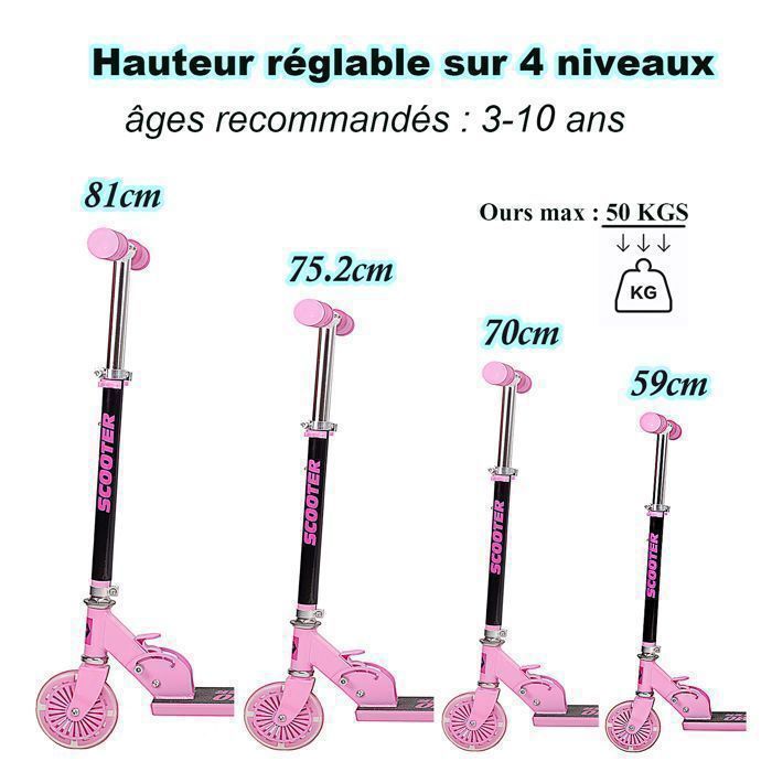 V2 Trottinette Pour Enfants 3 À 12 Ans, Trottinette Pliable À 2 Roues Couverture de Suotu pour trottinette électrique R1 Scooter Réglable Hauteur 3-12 Ans TROTTINETTE à Frein à Disque Pour Adulte En Aluminium Pliable Hauteur Réglable Pour Enfants De 8 Scooter Enfant Réglable SUOTU Trottinette pour Enfants avec 2 Roue lumineuse de 14,5 cm, Pliable, Hauteur Réglable, Scooter pour Garçons et Filles de 3 à 12 Ans, Charge Max., 50 kg, Aluminium Plus les roues tournent vite, plus elles brillent. Trottinette Pour Enfants Trottinette De Ville Scooter Pliable Réglable... Haute Qualité et Sécurité: Équipées de roulements ABEC-7 haute performance, de freins en aluminium sur le garde-boue arrière, d'un guidon en TPR, de roues en PU et d'un repose-pieds mat, elles garantissent une conduite stable et fluide sur toutes les surfaces. L'éclairage s'éteint après la conduite. Achetez en Toute Sérénité: SUOTU s'engage à fournir des trottinettes de haute qualité et offre un service client d'un an. Composée d'un guidon en T léger en aluminium et d'une planche de 3,3 kg, elle est facile à transporter.